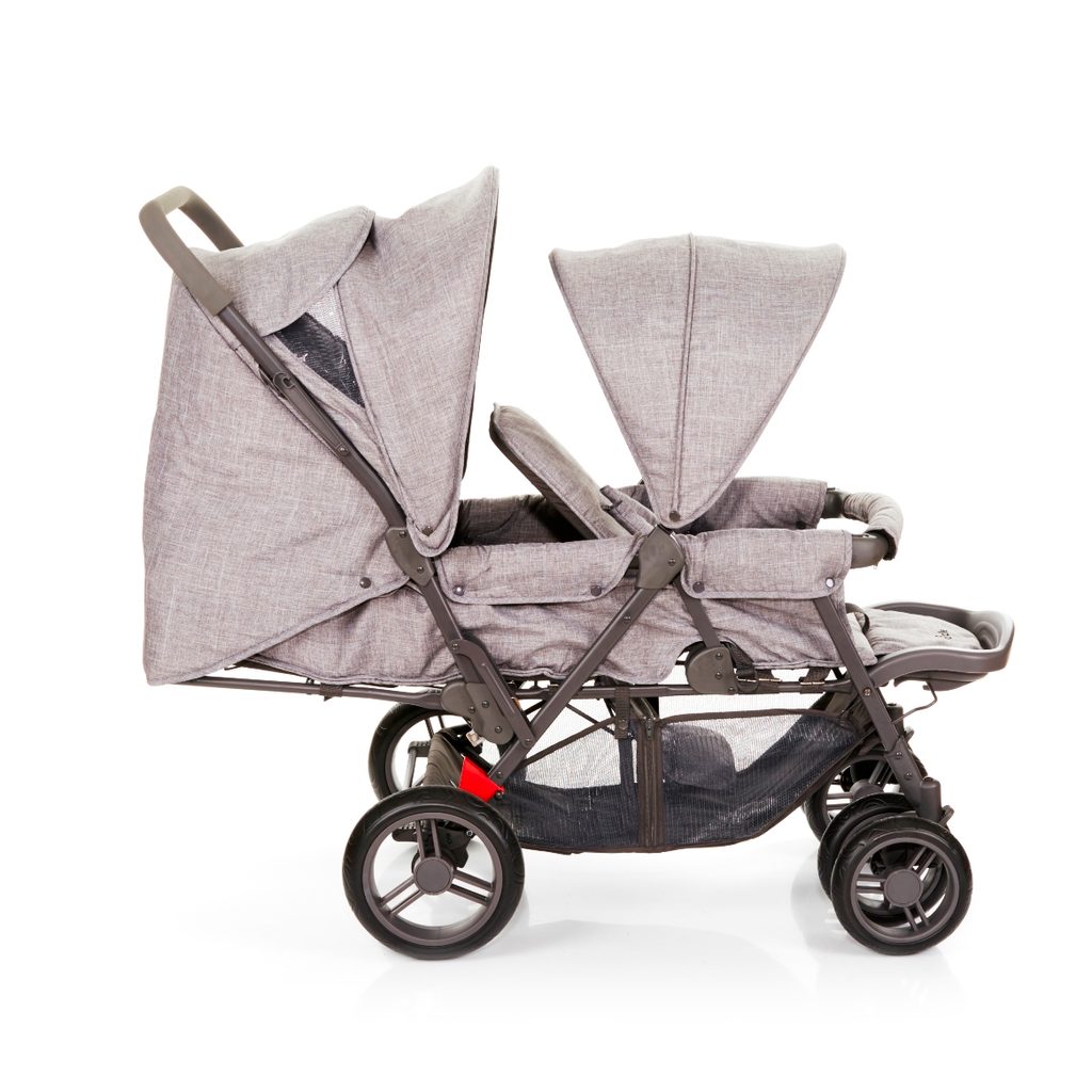 Tandem Plus je oblíbenou volbou pro rodiny s dvěma dětmi. Obě opěrky zad, přední i zadní, jsou nastavitelné a zadní lze zcela sklopit. Svislá i vodorovná pozice nabízí dostatek místa pro děti. Přední kolečka umožňují otočný i aretační režim a zajišťují tak bezproblémovou jízdu. Odnímatelné madlo poskytuje nezbytnou bezpečnost během jízdy. Velká okénka ve stříšce umožňují dobrý výhled pro rodiče i děti. Nastavitelná opěrka nohou a velký nákupní koš završují vybavení sourozeneckého kočárku. Transportní zámek zajišťuje složený kočárek během přepravy.