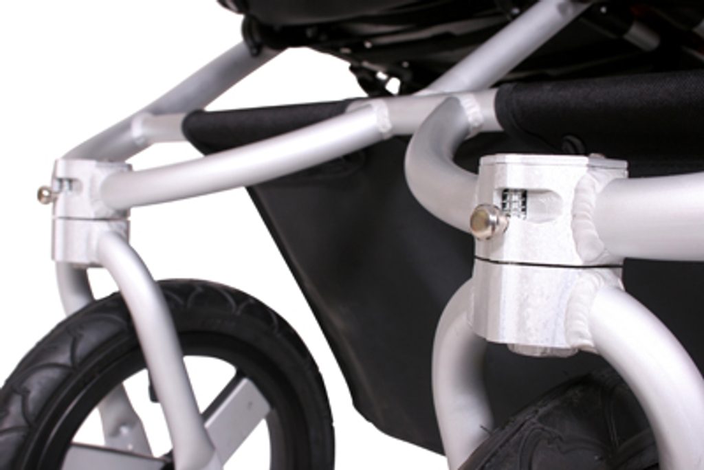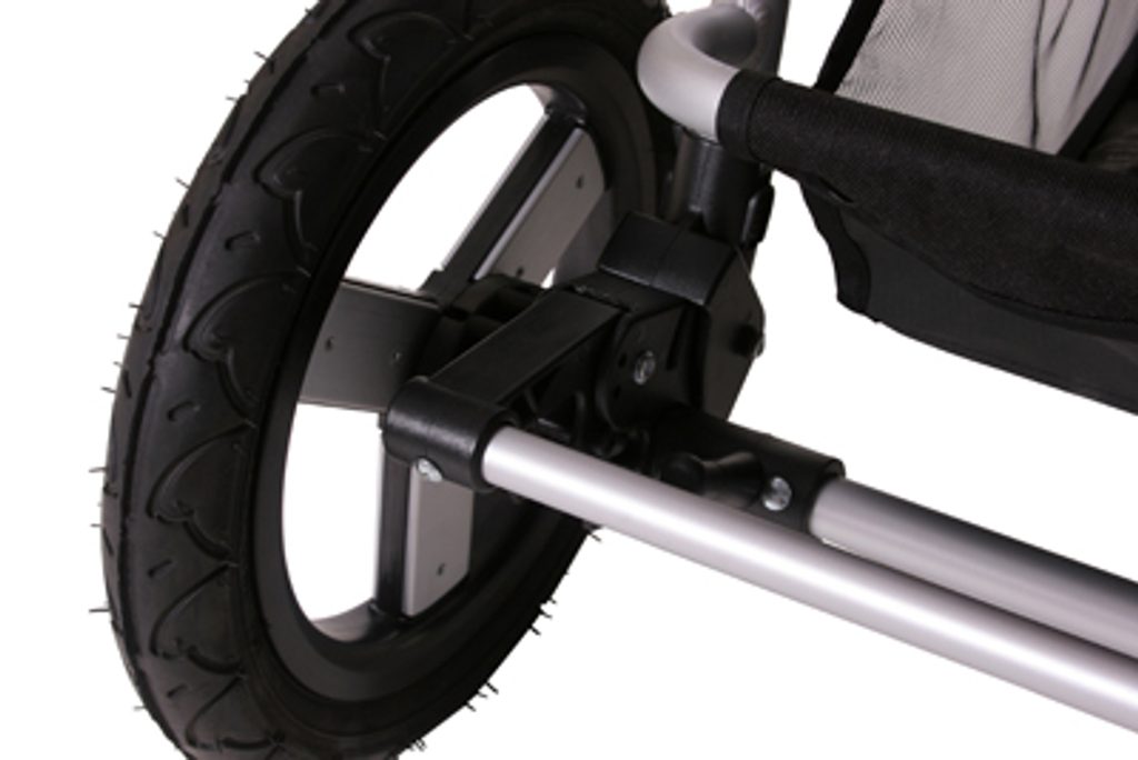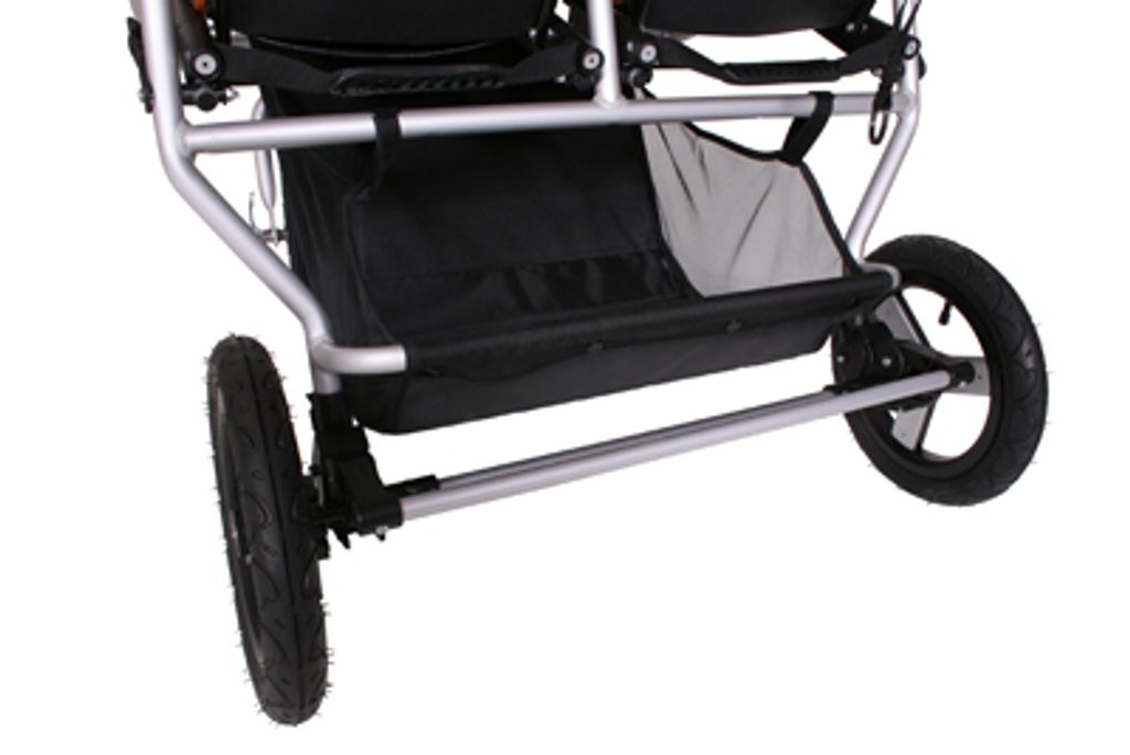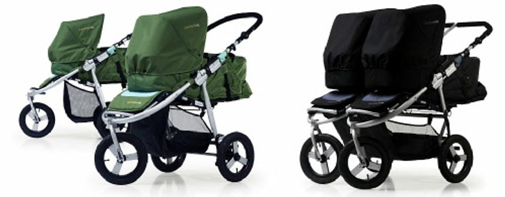 odlehčená hliníková konstrukce, kočárek je velmi lehce skladný , velmi snadné polohování každé sedačky i nohou zvlášť, stříšky tvoří i dobrou sluneční clonu a tím odpadají i nepraktické slunečníky, stříšky a nánožníky jsou zateplené, ve stříškách jsou praktická zapínatelná okénka a mají možnost letní i zimní verze, 4 nafukovací kola pr. 30 cm, velký a snadno přístupný košík, onímatelné sklápěcí madlo