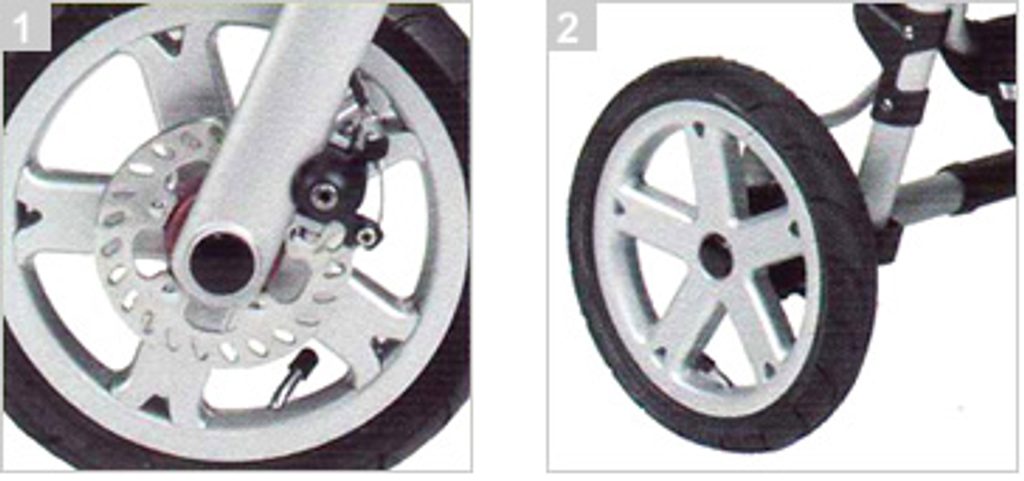 Typ koleček: nová kolečka s hliníkovým efektem a nafukovacími pneumatikami.