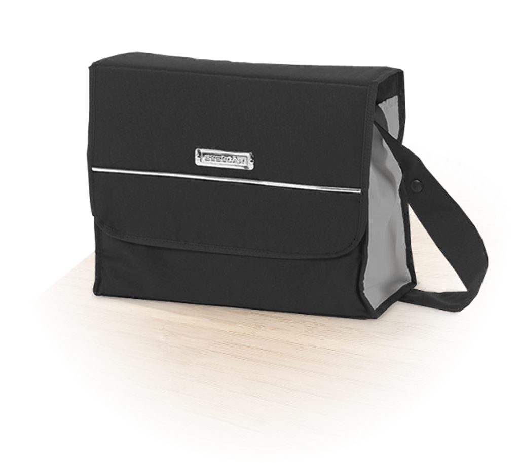 Moderní, lehký podvozek s plastovými koly, vpředu otočnými o 360° s možností aretace v dosahu rukojeti, se snadným a rychlým skládáním, pro cestu městem a vhodný pro malý úložný prostor vašeho vozidla.