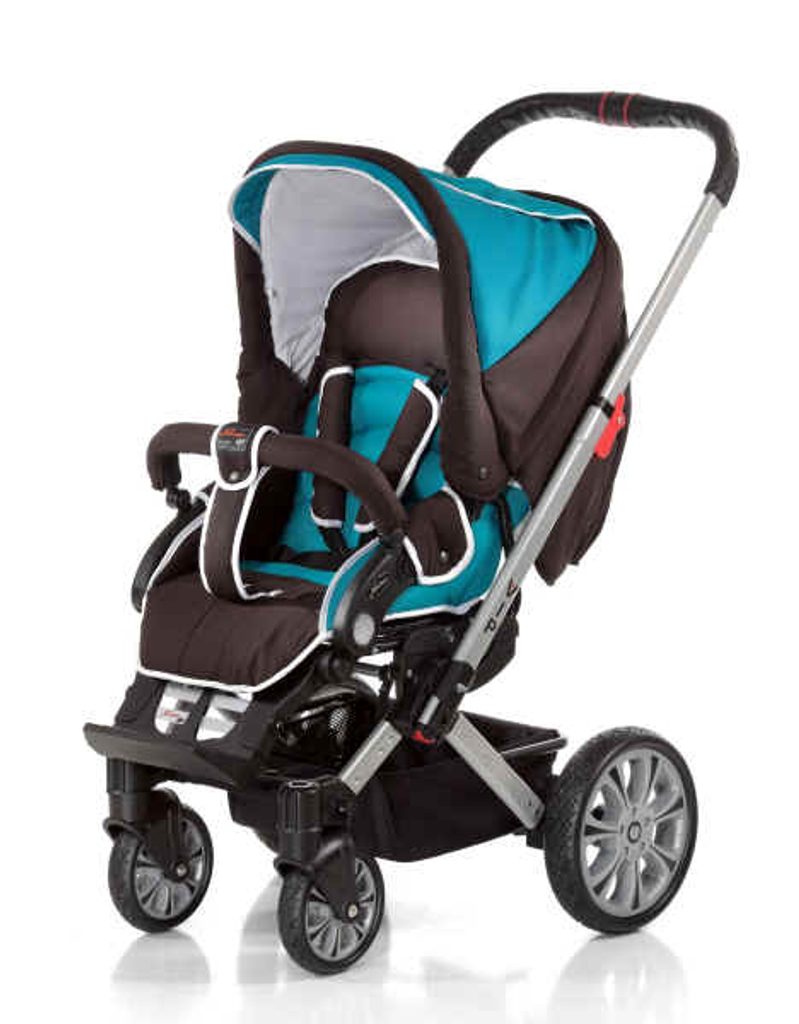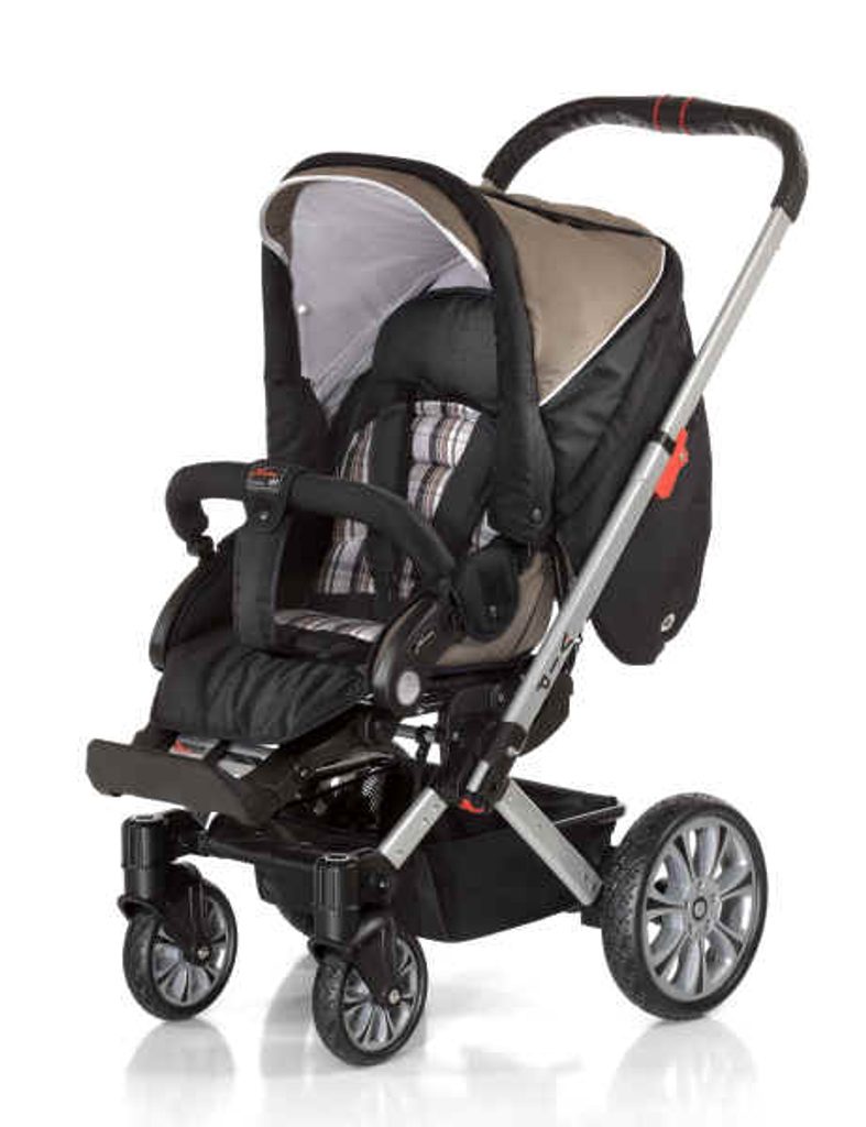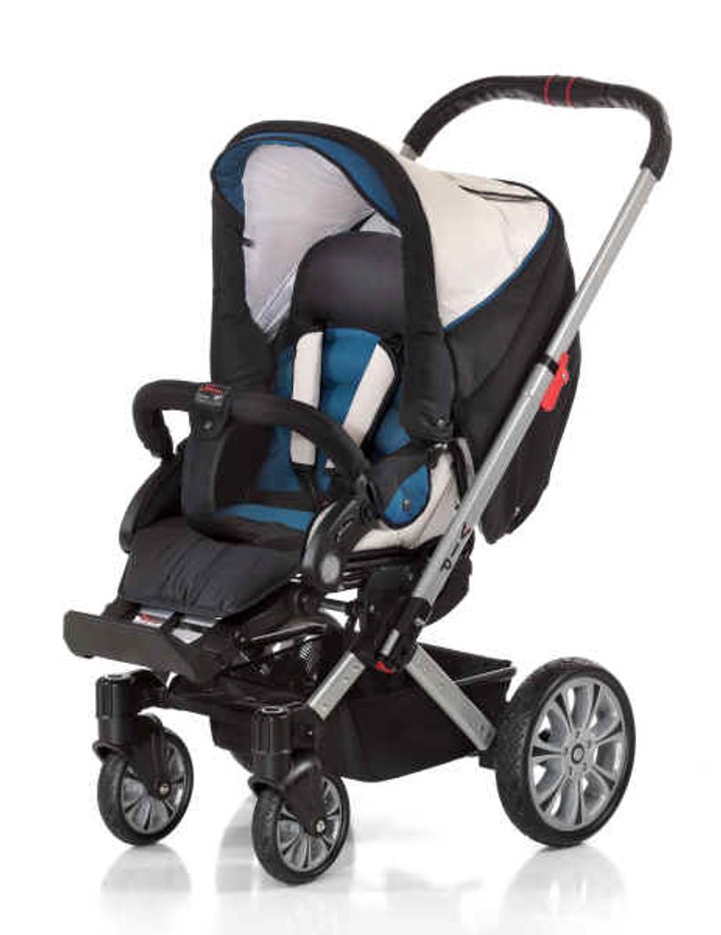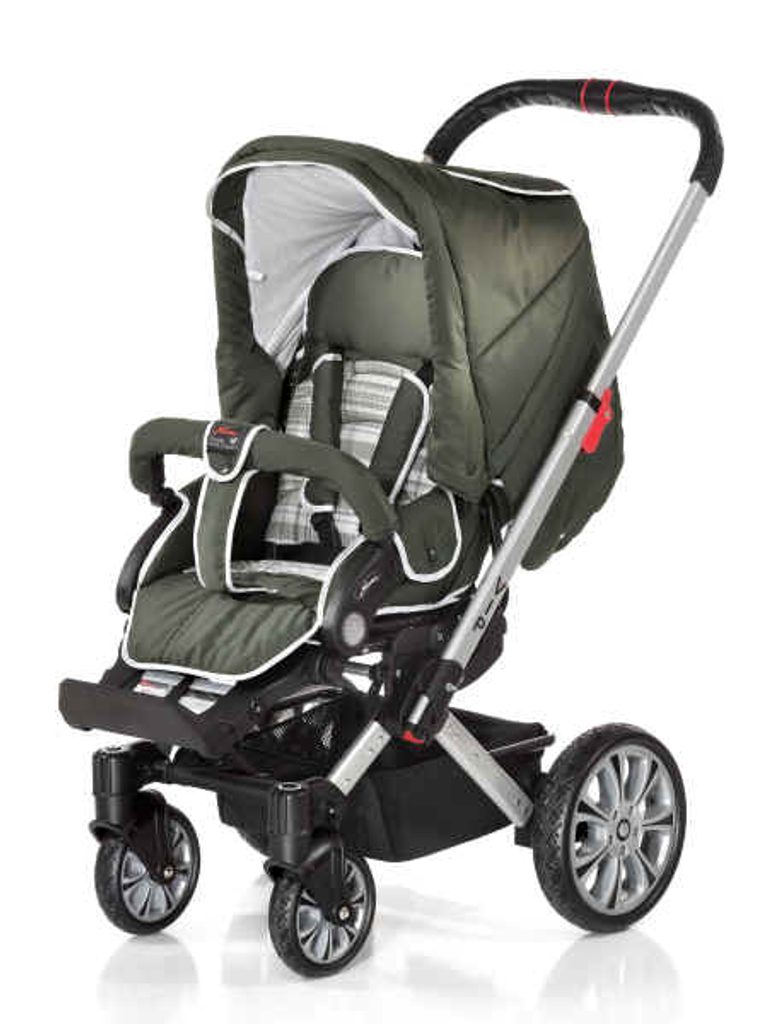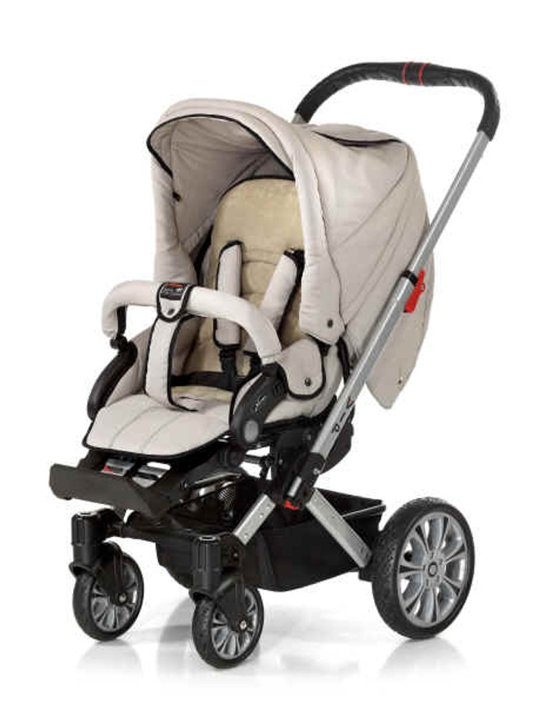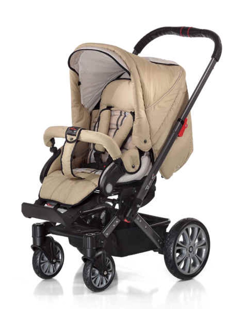 Sportovní kočárek nejnovější konstrukce, ke kterému je navíc prostorná korba s kokosovou matrací, kočárek lze tedy užívat již od narození dítěte.
