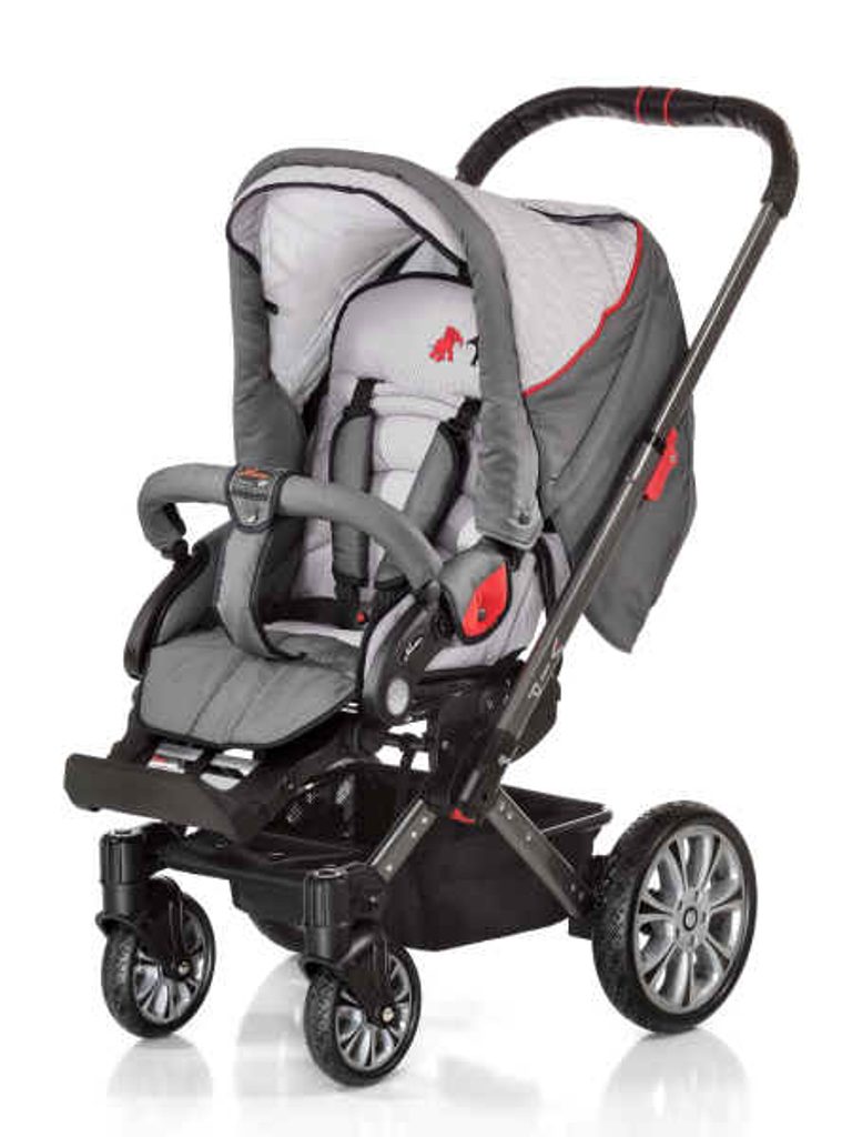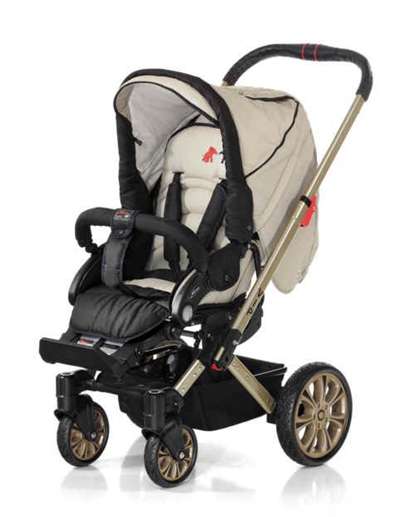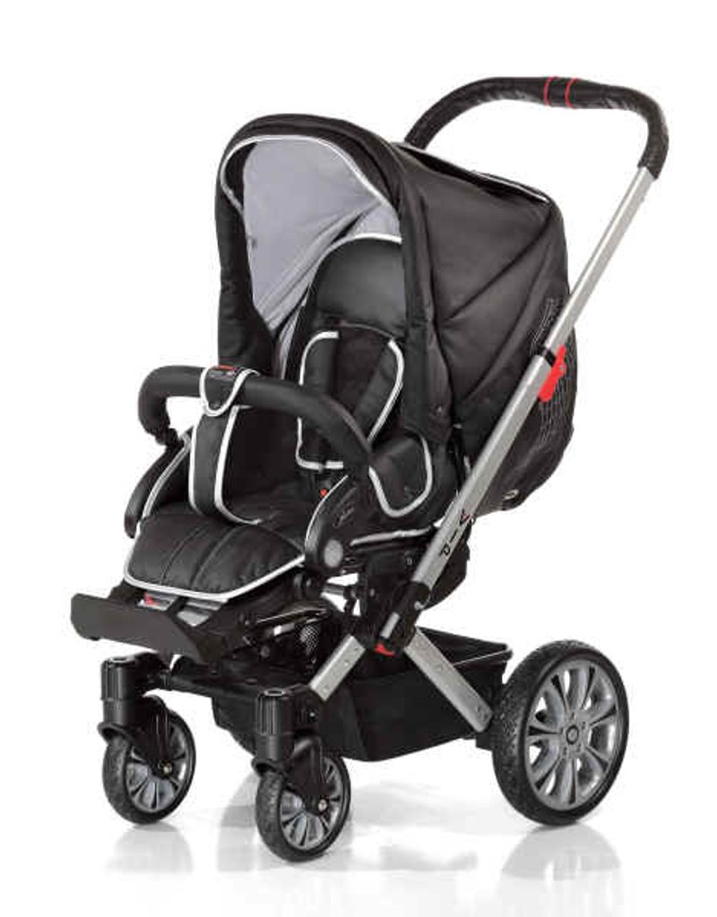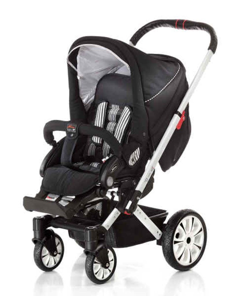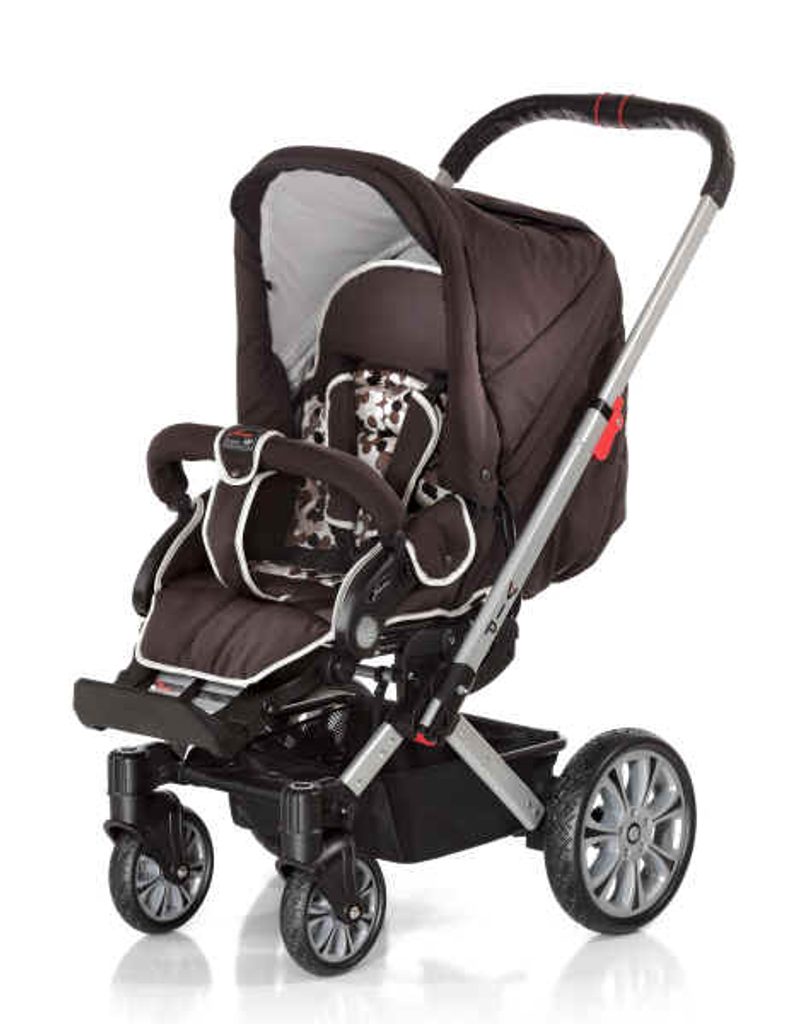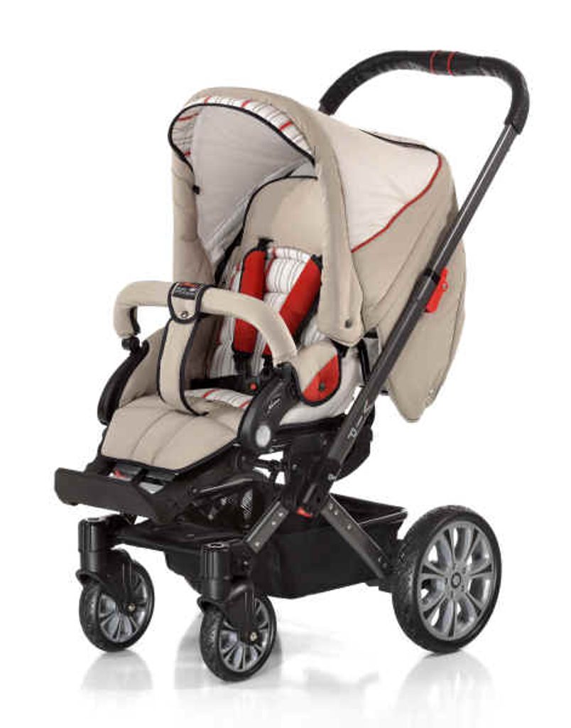 Sportovní kočárek nejnovější konstrukce, ke kterému je navíc prostorná korba s kokosovou matrací, kočárek lze tedy užívat již od narození dítěte.