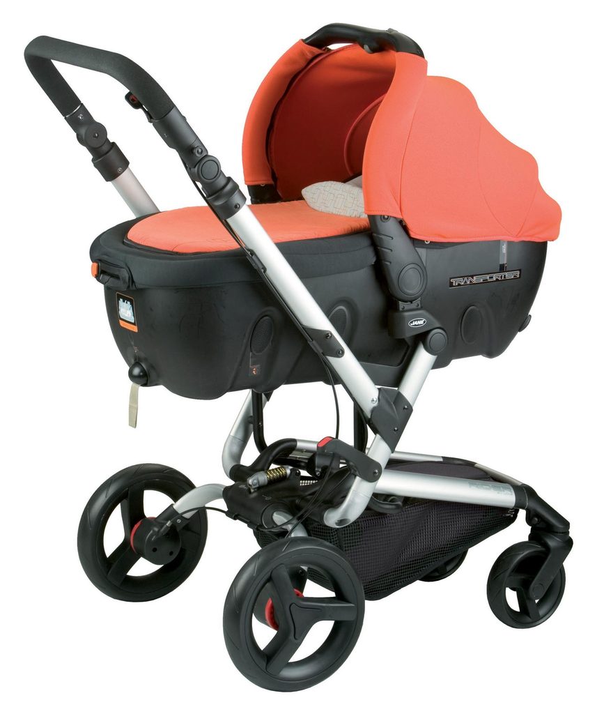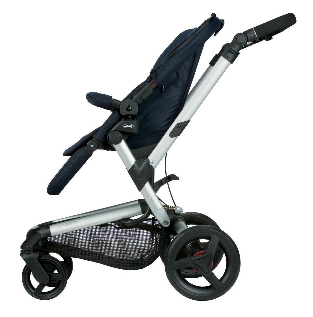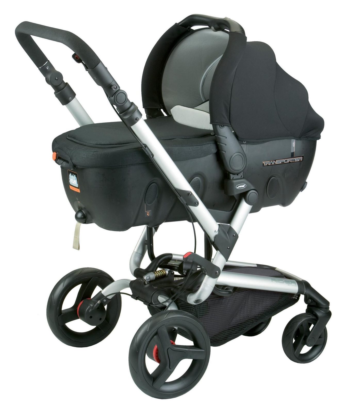 Kompletní set zahrnuje, sportovní kočárek  Jané Rider s podvozkem, hluboké lůžko Jané Transporter a autosedačku Jané Strata