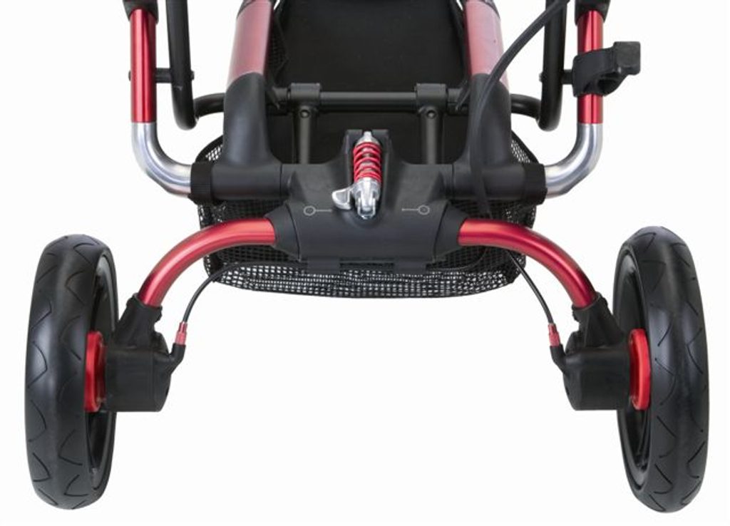 Zadní část konstrukce ve tvaru obráceného písmene "c" výrazně ulehčuje tlačení kočárku - vytváří volné místo pro nohy a tím umožňuje volnou a lehkou chůzi. Sportovní sedačka má polohování nožiček, polohovatelné opěradlo se třemi stupni sklonu a jednou polohou pro úplné složení.