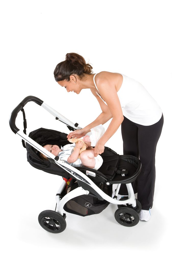 Více poloh zádové opěrky dítěti umožňuje pohodlně se usadit zatímco je vzhůru nebo může během spánku ležet. Díky této vodorovné poloze může kočárek kdekoliv posloužit i k přebalení dítěte.