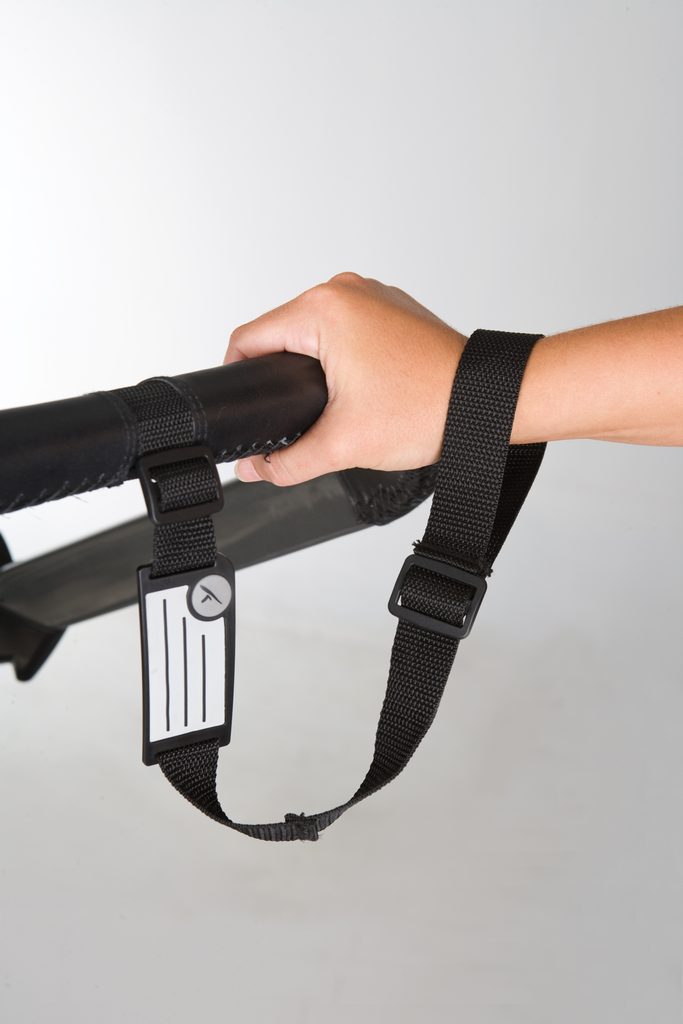 Díky rukojeti s povrchovou úpravou z kůže lze kočárek pohodlně řídit a činí jej příjemnějším na dotek.
