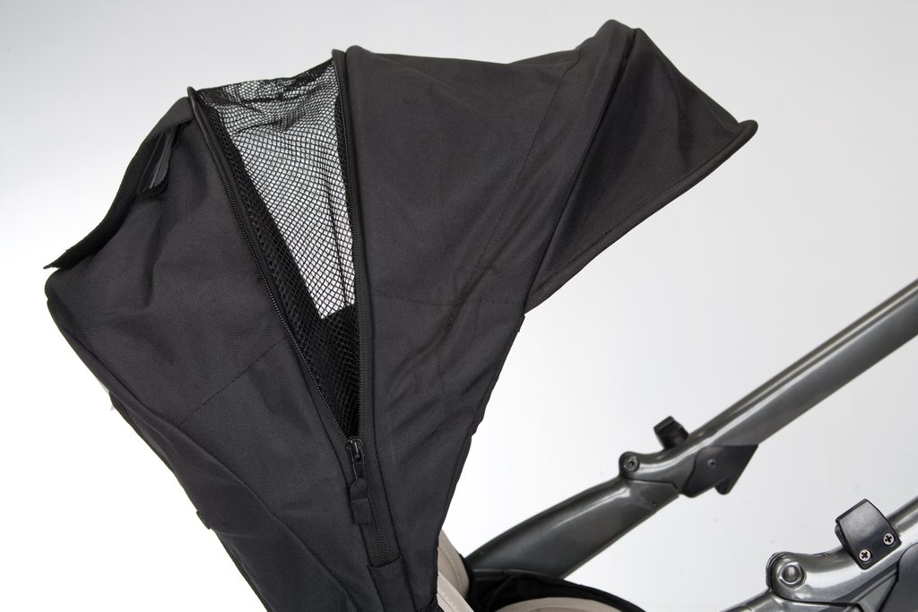 Prostorná sedací část je neobyčejně pohodlná, lze ji přizpůsobit potřebám vás i dítěte a díky použitému vysoce kvalitnímu textilnímu materiálu je také prodyšná