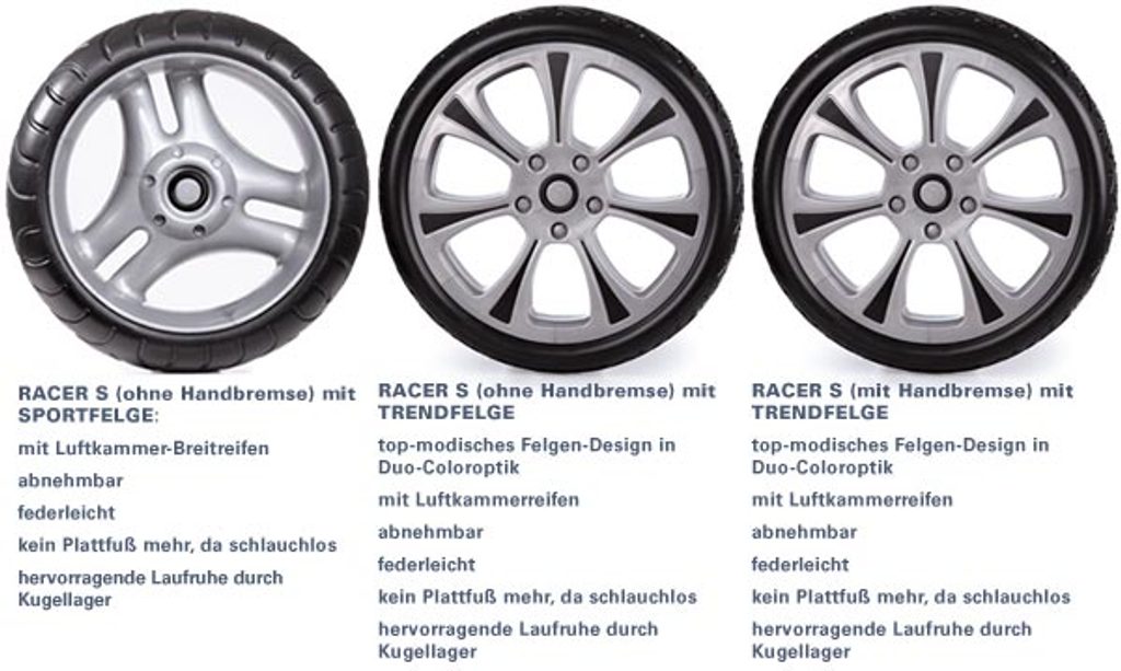 u kočárku s ruční brzdou lze zvolit pouze bezdušová kola