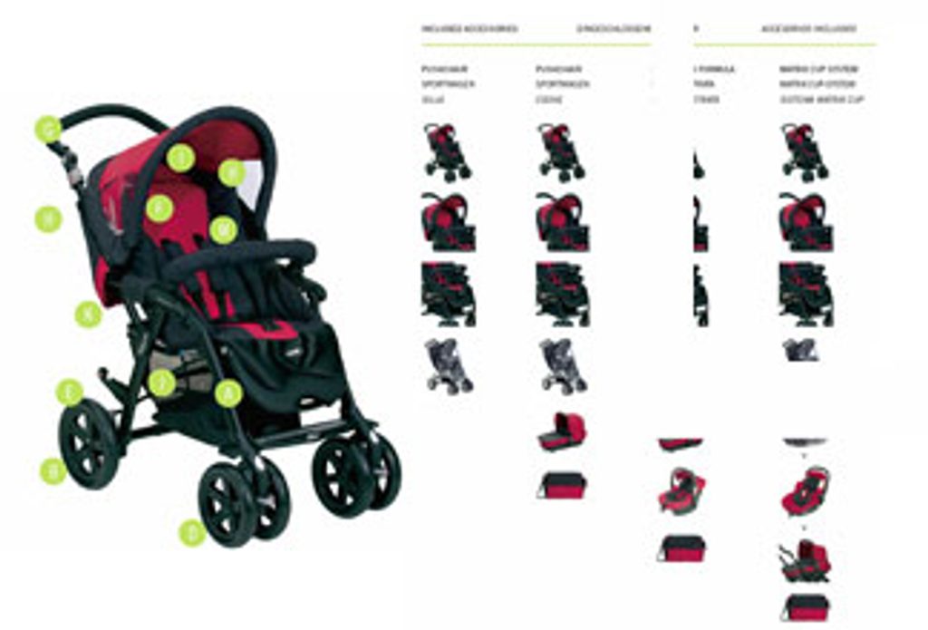 TECHNICKÝ POPIS - 100% ALU konstrukce podvozku (A) z tuhých oválných profilů. Tvrdší odpružení podvozku, zadní kola mají možností nastavení tuhosti odpružení (B). Ostatní části konstrukce jsou z polypropylenu za účelem zajistit minim váhu kočáru. Kola jsou bezdušová, plastová (C), u modelu Nomad Air jsou nafukovací, přední zdvojená kola jsou otočná s možností aretace (D). Zadní kola s nášlapnou zadní brzdou jsou lehce vyjímatelná (E).