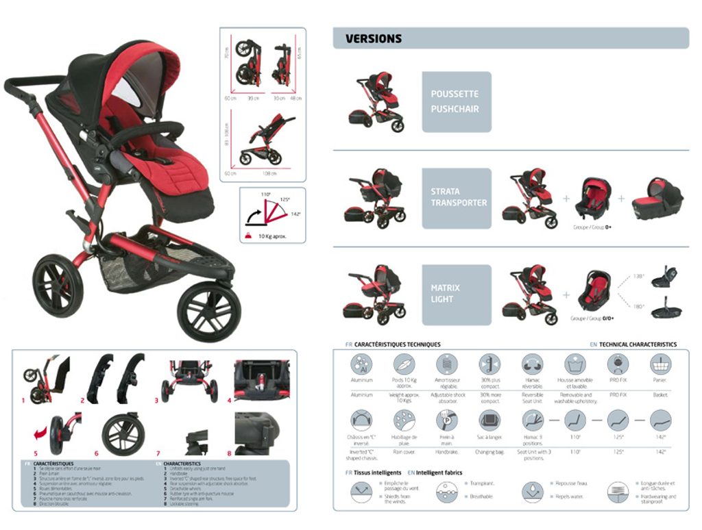 lze kombinovat kočár s lůžkem nebo autosedačkou
