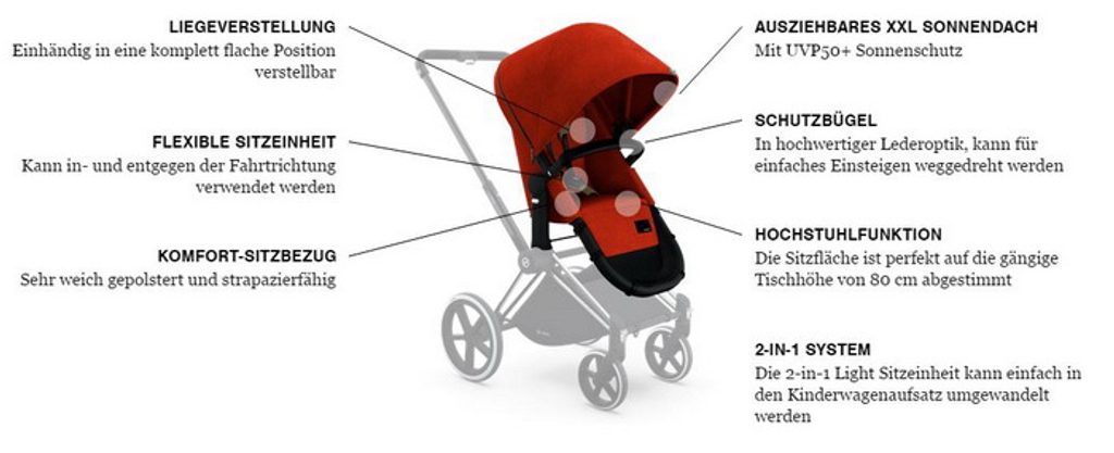Jednou z největších výhod této sportovní nástavby je její otočná konstrukce, která umožňuje používat ji jak po, tak proti směru jízdy. Tímto způsobem si můžete snadno přizpůsobit pohled na svět vašeho dítěte a zároveň sledovat jeho pohodlí. PRIAM 2-in-1 LIGHT SEAT se navíc snadno přemění na korbičku, což poskytuje maximální pohodlí pro novorozence i batolata.