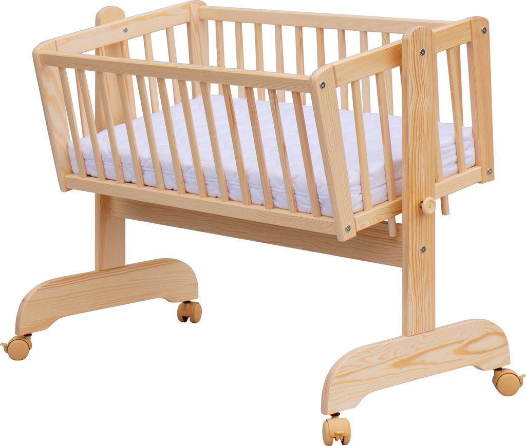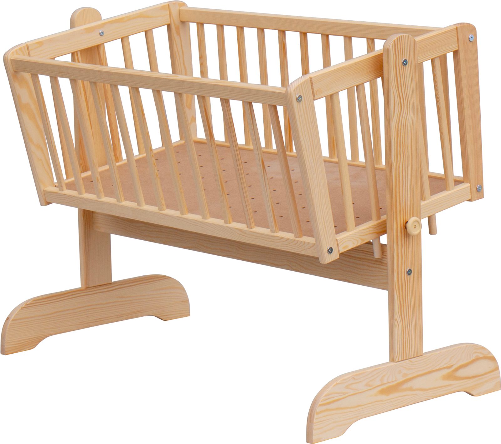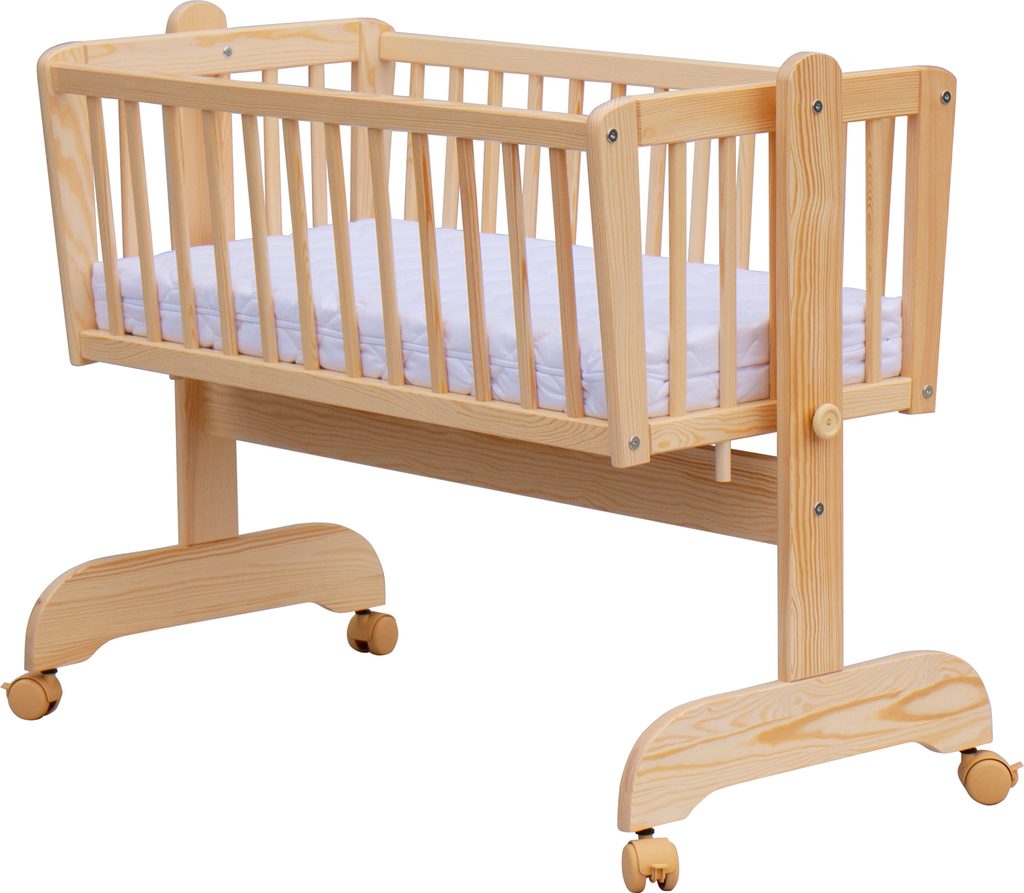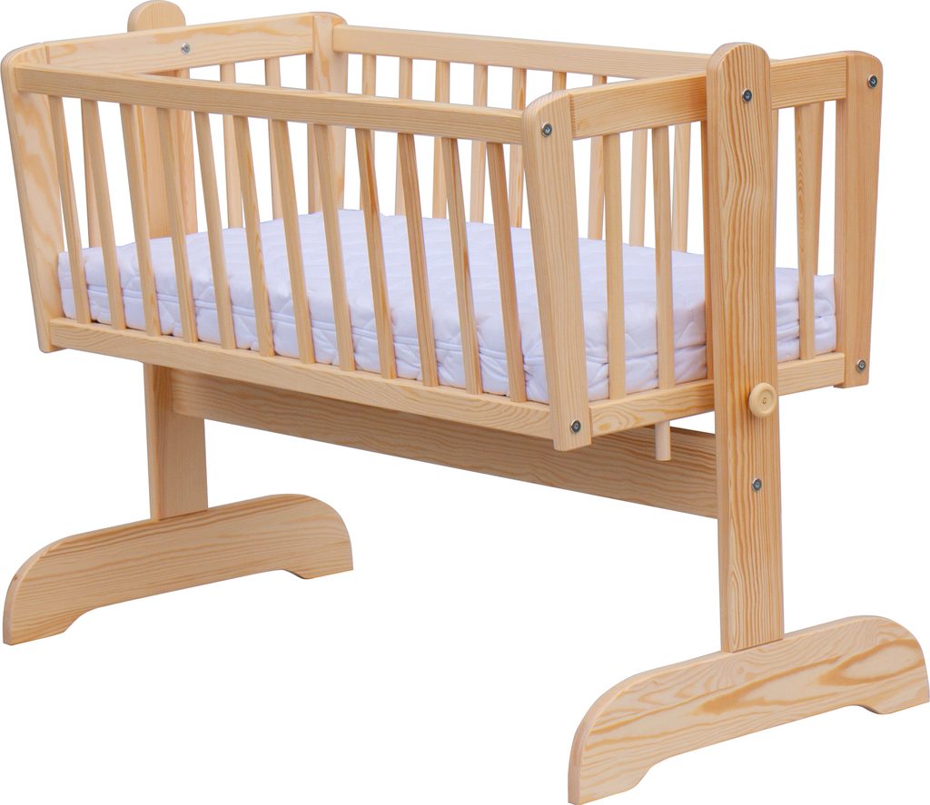 Krásná kolébka z borovicoveho dřeva je ideální pro usínání miminek.