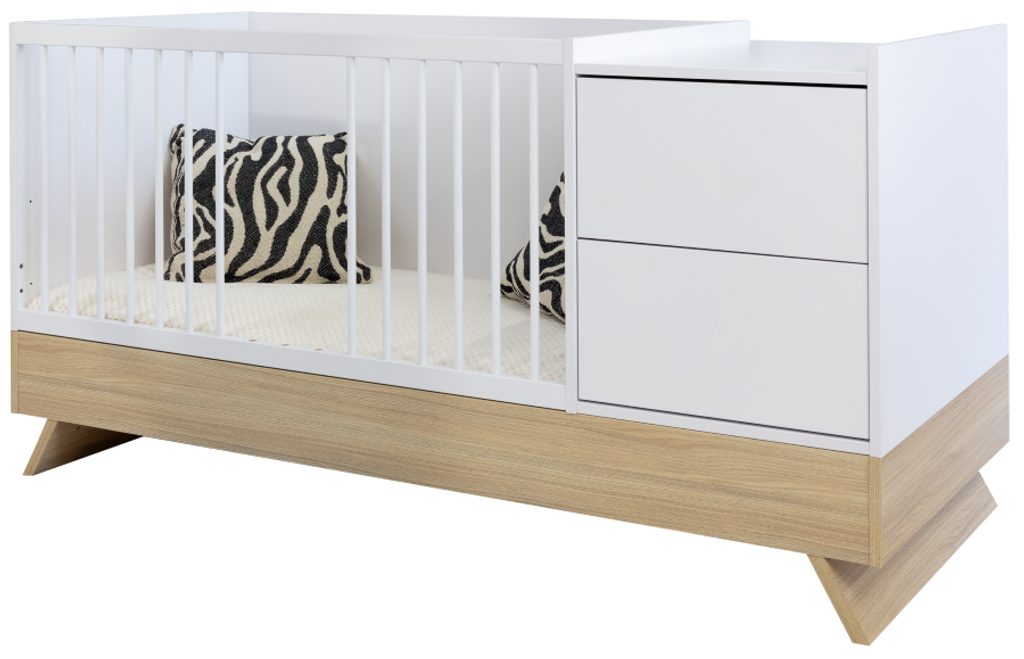 Díky funkci 3 v 1 je navržena tak, aby rostla s vaším dítětem: začíná jako dětská postýlka s komodou, pak se snadno změní na větší dětskou postel a praktickou skříňku – zůstane milovanou částí dětského pokoje po mnoho dalších let.