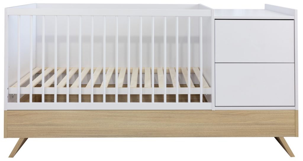 - Nabízí funkci 3 v 1, protože ji lze použít jako dětskou postýlku s komodou, později přeměněnou na větší dětskou postel a praktickou skříňku – zůstane součástí dětského pokoje po mnoho dalších let.