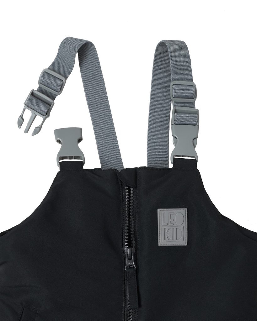 - příslušenství: plastový zip s kovovým jezdcem, silikonová nášivka s logem Leokid, elastické polyesterové šle, plastové knoflíky, plastové přezky s fastex zapínáním a silikonové pásky