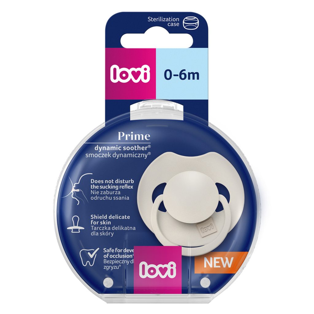 Dynamický dudlík LOVI z kolekce PRIME je bezpečný pro sací reflex a nenarušuje vývoj řeči a skusu*.​