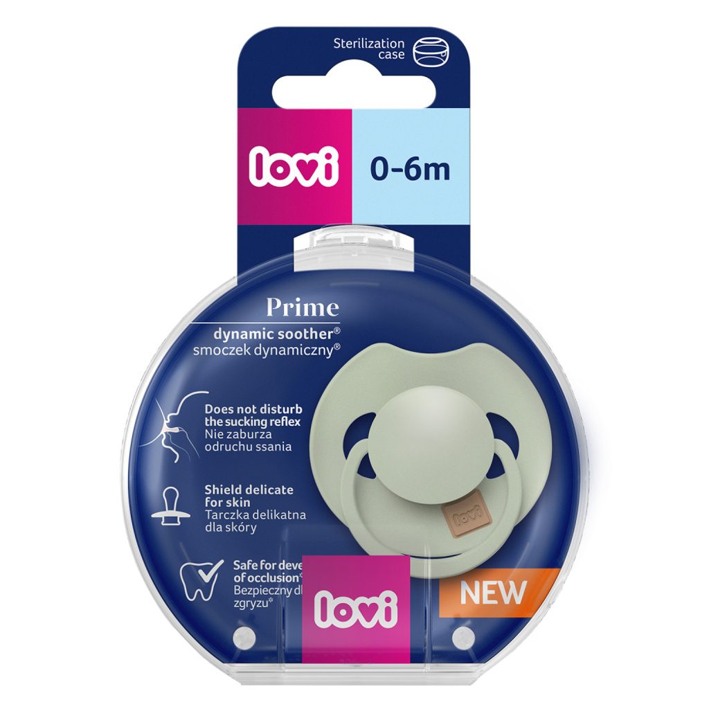 Dynamický dudlík LOVI z kolekce PRIME je bezpečný pro sací reflex a nenarušuje vývoj řeči a skusu*.
