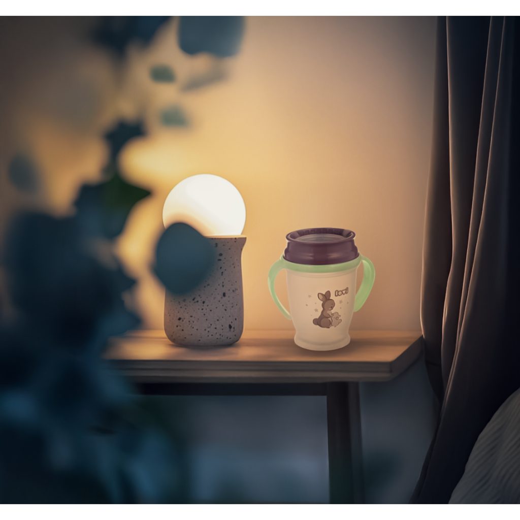 Naučit se pít jako dospělí. Hrneček 360° NIGHT&DAY je ideální pro děti, které jsou připraveny pít samy. Díky svému inovativnímu těsnění umožňuje nasávání tekutiny odkudkoli kolem okraje. Dítě si tak zvykne na přirozený, dospělý způsob pití, například jako z otevřeného hrnečku a ze sklenice, ale bez rozlití.