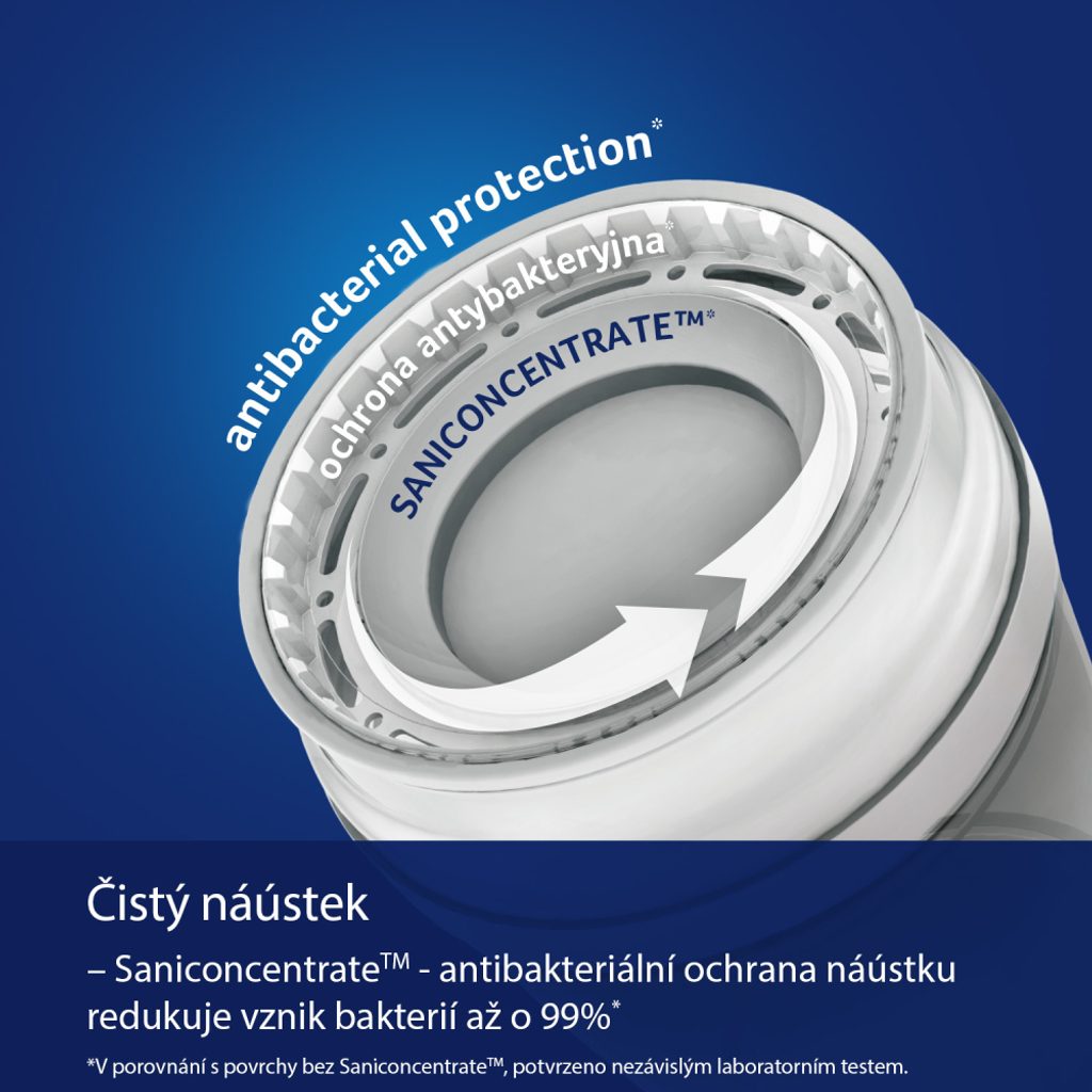 Antibakteriální ochrana SaniconcentrateTM - redukuje až 99,99 % bakterií.