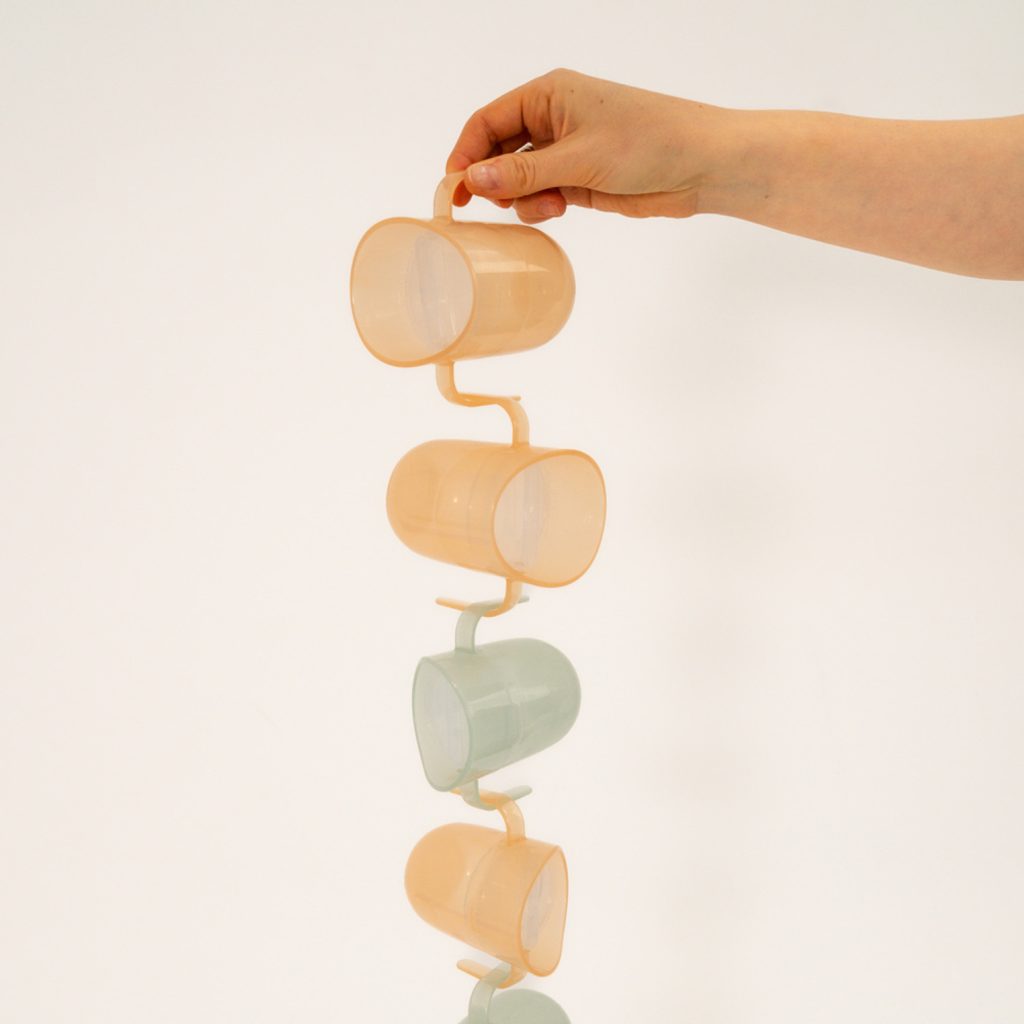 Lehký a malý hrneček s profilovanými rukojeťmi přizpůsobenými malým dětským ručičkám.