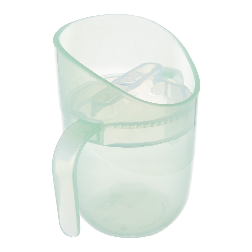 Lehký a malý hrneček s profilovanými rukojeťmi přizpůsobenými malým dětským ručičkám.
