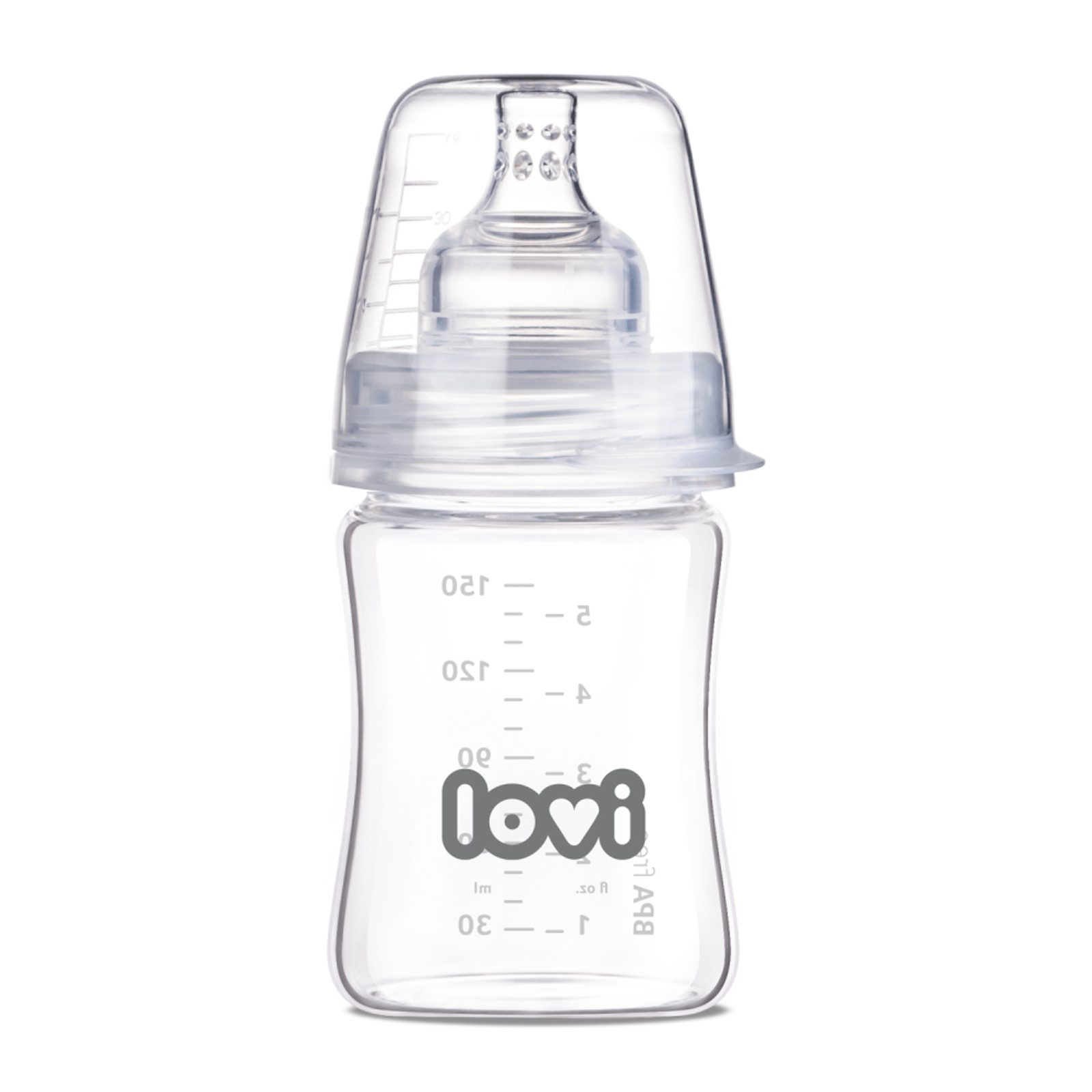 LOVI skleněná lahev s dynamickou savičkou LOVI je navržena tak, aby podporovala přirozené kojení a nenarušovala sací reflex miminka. Objem 150 ml, bez BPA.