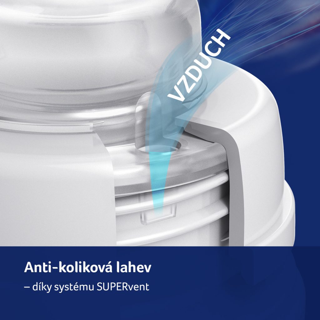 • Antikolikový systém odvzdušňování SUPERvent - nový, efektivní odvzdušňovací systém SUPER VENT zabraňuje smíšení mléka se vzduchem. Tímto způsobem se sníží riziko vzniku kolik.