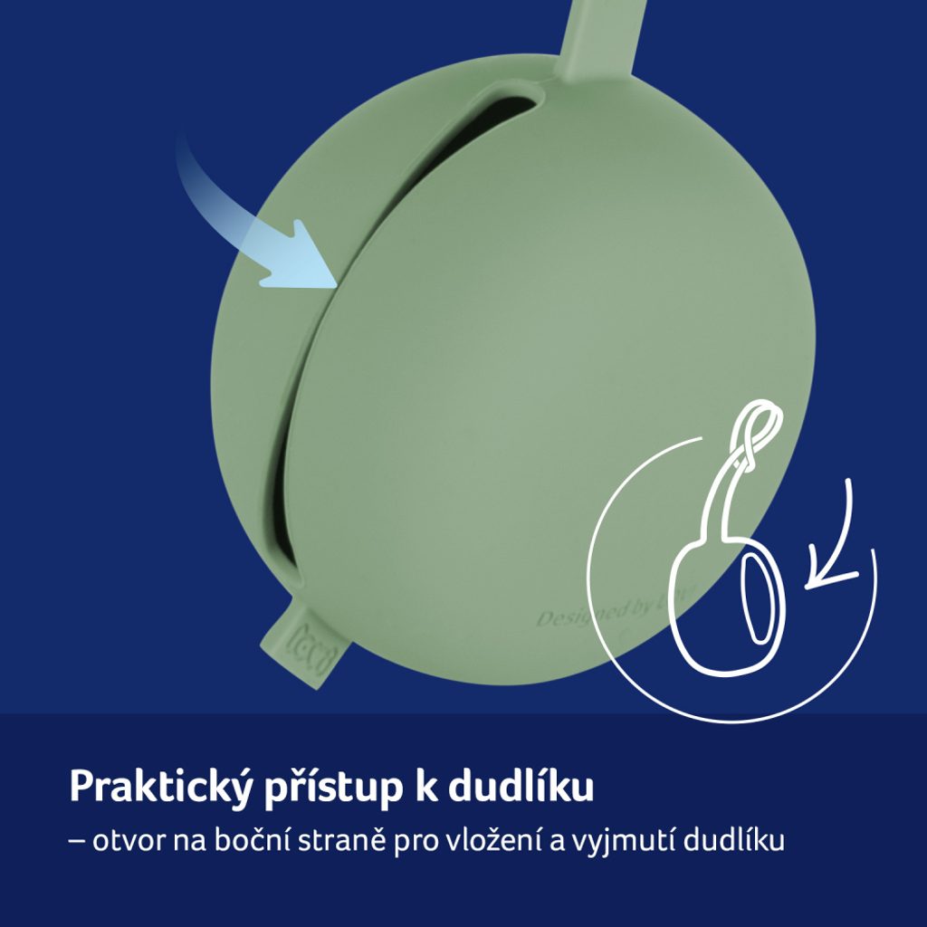 Flexibilní rukojeť pouzdra snadno připevníte na tašku nebo kočárek a speciálně navržený postranní otvor umožňuje vložení a vyjmutí dudlíku bez nutnosti oddělování celého pouzdra .