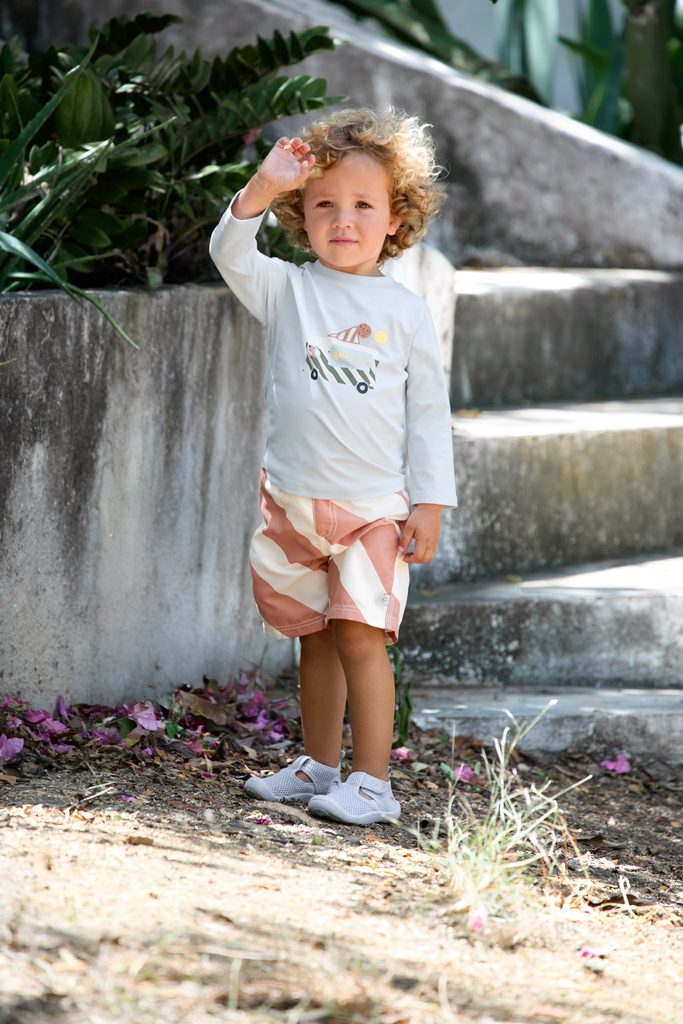 Prodyšný a rychleschnoucí materiál zajišťuje pohodlí i po celodenním šplouchání. Suchý zip umožňuje snadné nazouvání a zároveň drží sandálek pevně na místě – žádné posouvání, žádné odírání. Měkká ohebná podrážka s protiskluzovou úpravou dodává jistotu na každém povrchu, a velkorysá špička dává prostor pro zdravý vývoj nožičky. Po návratu z pláže stačí hodit do pračky.