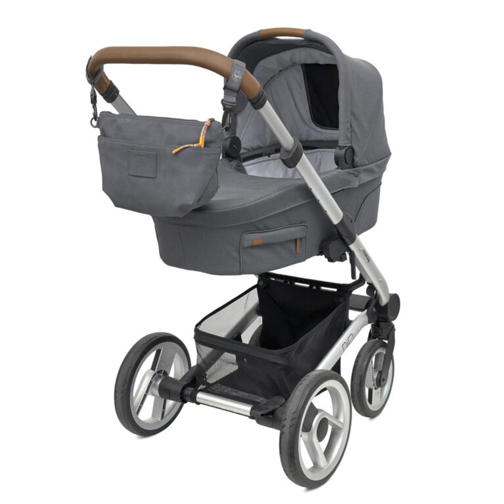 lze připevnit na kočárek pomocí háčků, nosit přes rameno jako kabelku nebo cross bag