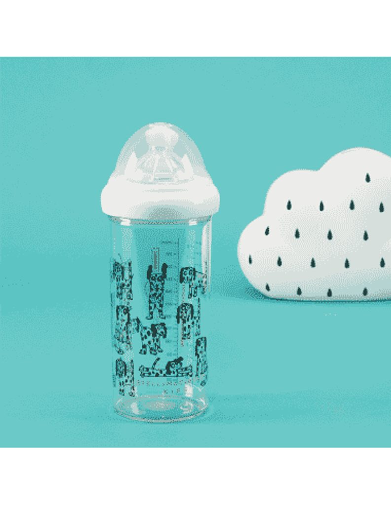 Prémiová patentovaná dojčenská fľaša LE BIBERON FRANCAIS z kolekcie Stella McCartney Kids, vyrobená z copolyesteru, 360 ml, vhodná od 6 mesiacov.