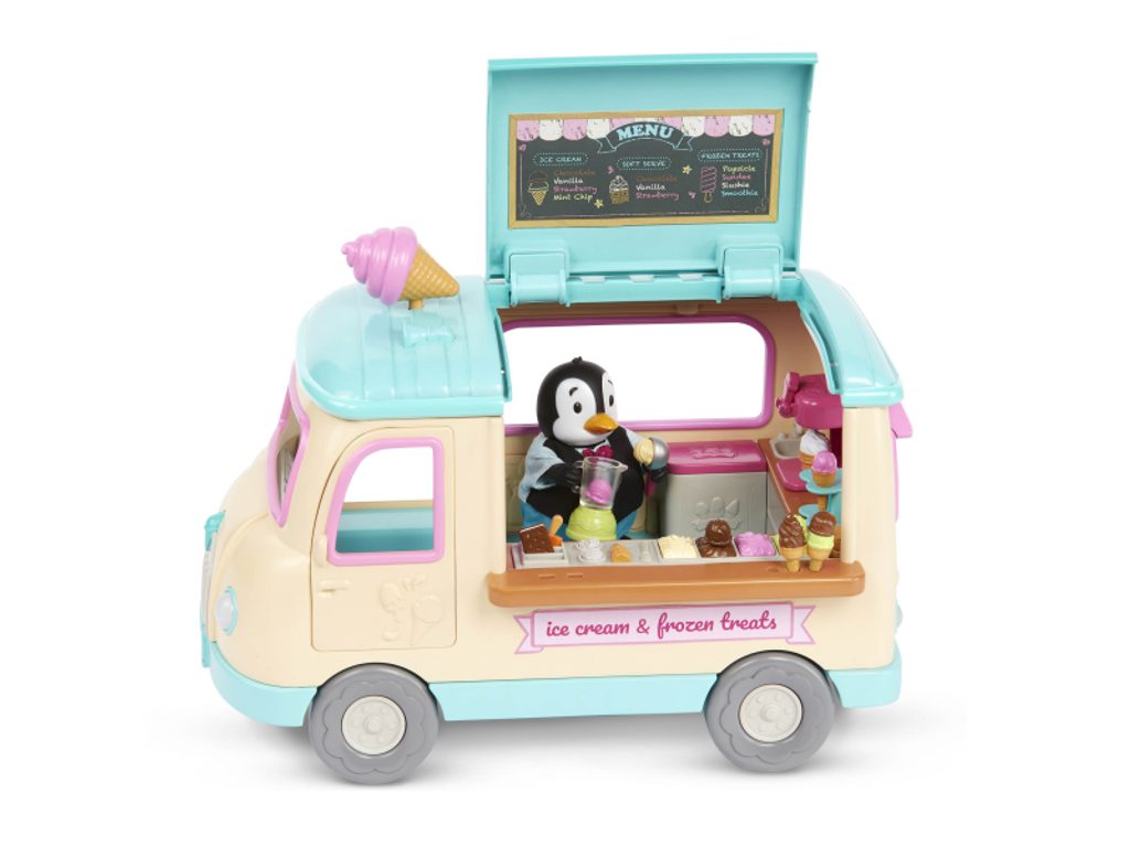 Sada obsahuje barevnou dodávku a širokou nabídku příslušenství potřebného k prodeji chladivého občerstvení. Celkem najdete 27 dílů. Postavičky zvířátek nejsou součástí balení a prodávají se samostatně.
