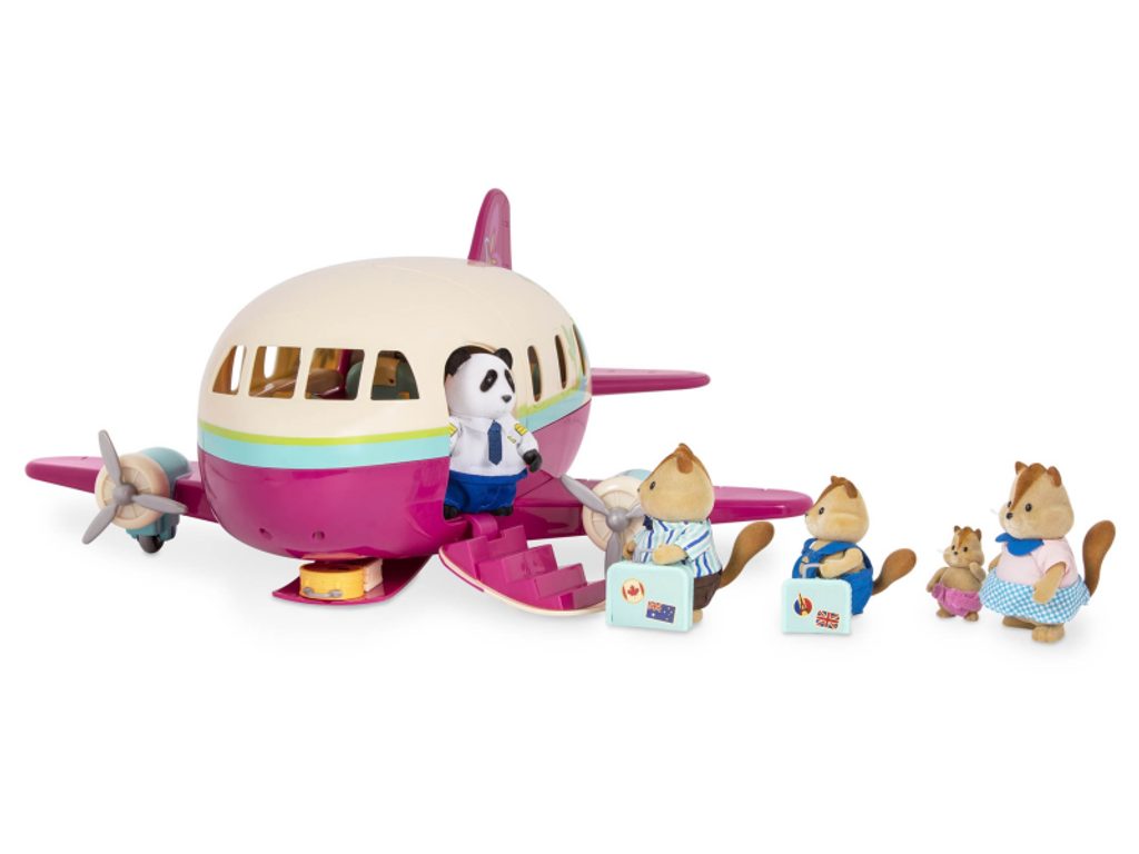 Luxusně vybavené letadlo přepraví obyvatele Honeysuckle Hollow na dovolenou s maximálním komfortem! Polštářky a přikrývky zajistí pohodlné spaní během letu, bohaté občerstvení zpříjemní pasažérům každý let. Uniforma pilota je součástí balení, stačí tedy vybrat některou ze samostatně prodávaných postaviček zvířátek Li'l Woodzeez a do uniformy ji převléct!