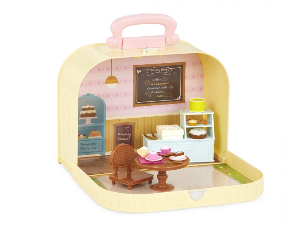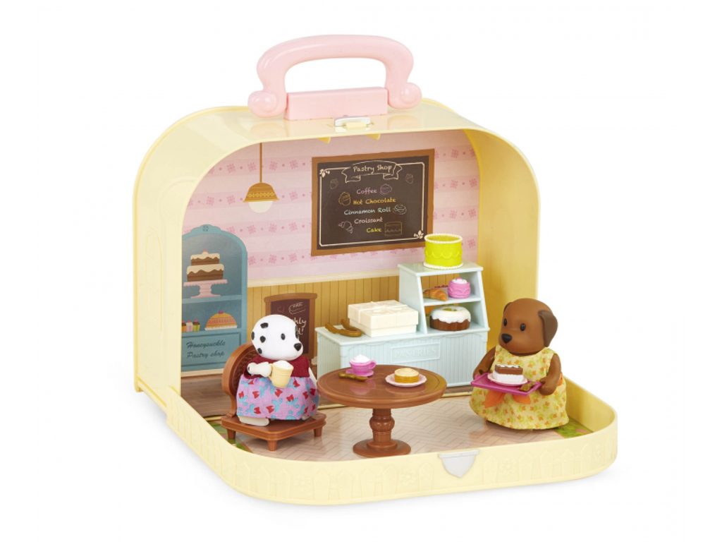 Cestovní sada hraček Li'l Woodzeeze v praktickém kufříku umožní vašemu dítěti hrát si se svými oblíbenými postavičkami kdekoli na dovolené, výletech či během víkendu u prarodičů. Kufřík se po otevření promění v bohatě vybavenou cukrárnu s nábytkem, doplňky a postavičkami pejsků Wandy a Ruby.