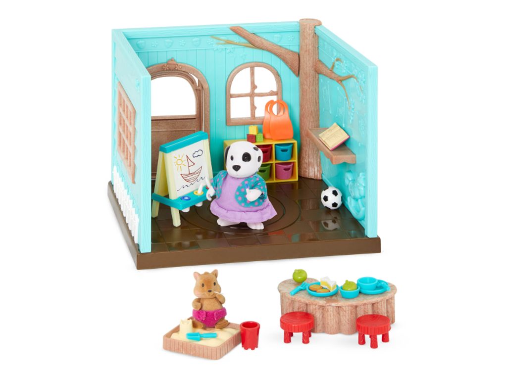 Ve školce Luvs & Hugs se děti z městečka Honeysuckle Hollow určitě nebudou nudit - zabaví se na pískovišti, malováním nebo hraním s kostkami či míčem. Když je čas na svačinku, mají na výběr z bohaté nabídky občerstvení. Součástí balení jsou dvě postavičky zvířátek - dalmatina Molly a mláděte veverky Honeybun.
