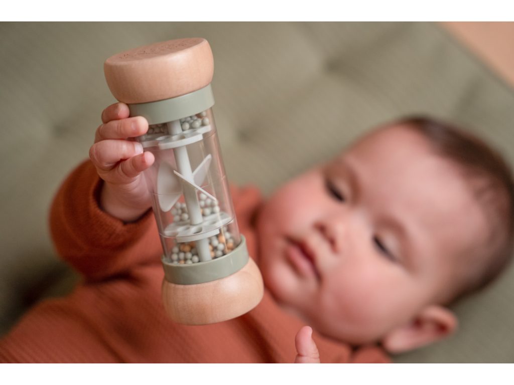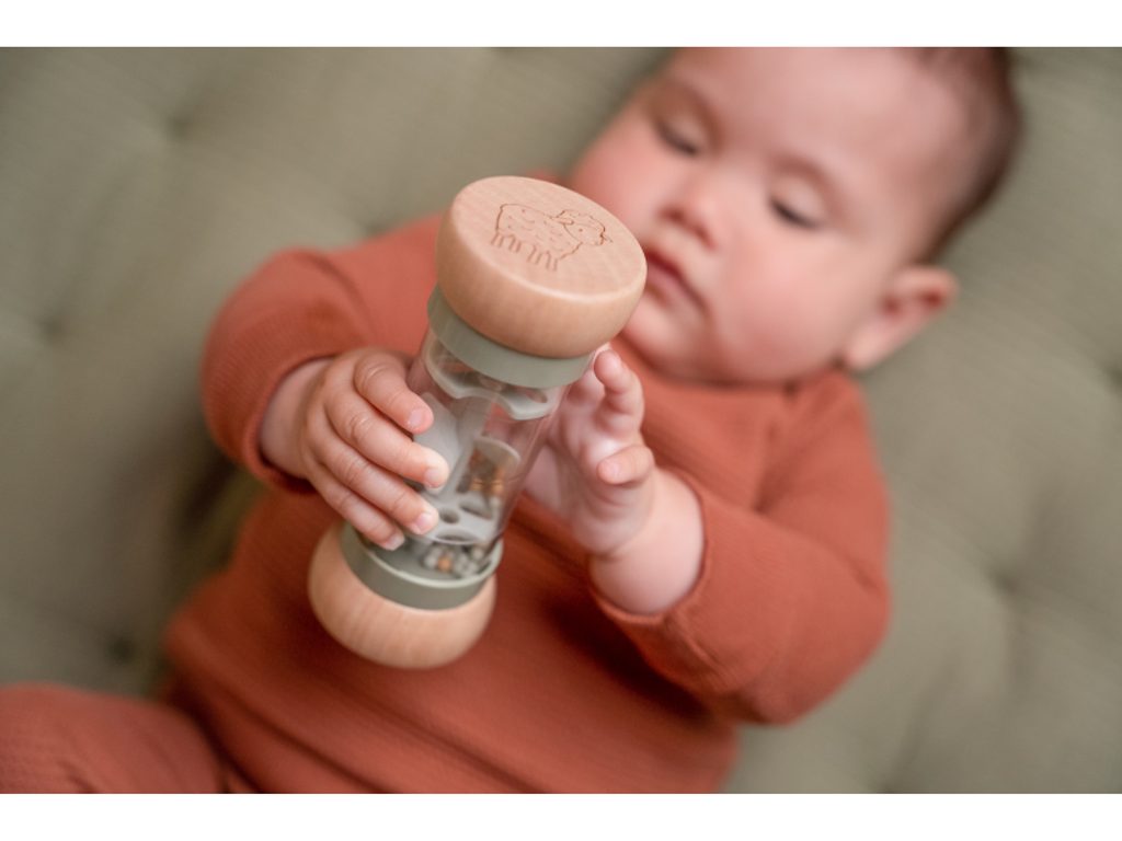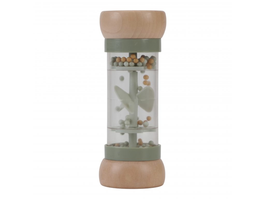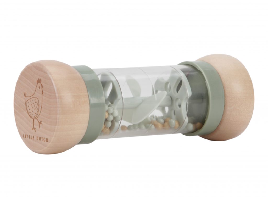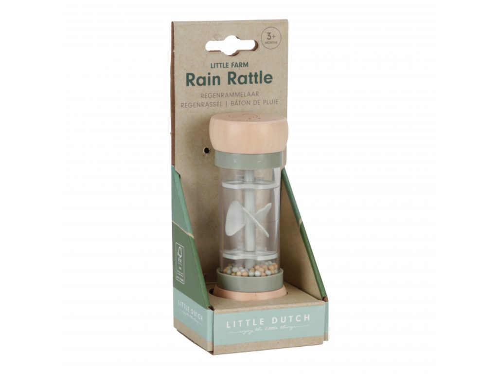 Chrastítko v krásném provedení v kombinaci dřeva a plastu. Korálky i otočná vrtule uvnitř chrastítka při pohybu jemně chrastí. Tvar hračky umožňuje snadné uchopení dětskými ručičkami. Hračka je součástí designové kolekce hraček a doplňků Little Dutch Farma. Vyrobeno z dřeva certifikovaného FSC. Rozměry: 14 x 5,4 x 5,4 cm Vhodné pro děti od 3 měsíců.