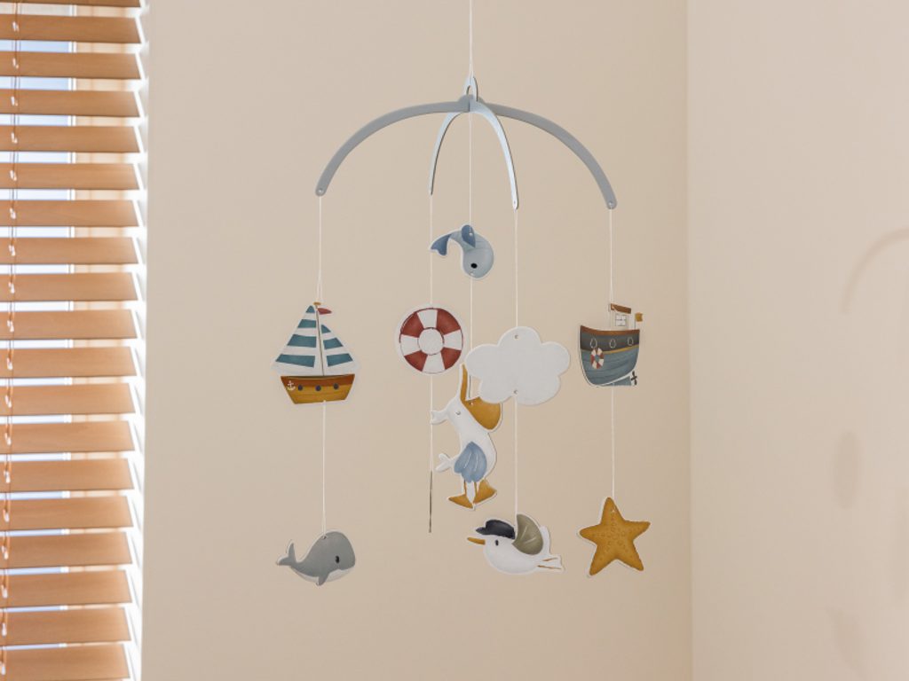 Dekorativní kolotoč s krásnými motivy kolekce Námořnický záliv upoutá pozornost vašeho dítěte v postýlce a stane se i originální dekorací dětského pokoje. Plachetnice, rackové, velryby a další motivy ze života na moři pomohou rozvíjet zrak dítěte a zároveň se jejich pozorováním uklidní před spaním. Kolotoč je součástí designové kolekce Little Dutch Námořnický záliv, ve které najdete ložní prádlo, dekorativní doplňky do dětského pokoje, dřevěné a plyšové hračky i jídelní doplňky pro dětské stolování. Konstrukce kolotoče i zavěšené motivy jsou vyrobeny z kvalitního silného kartonu. Kolotoč snadno zavěsíte s pomocí šňůrky od stropu.