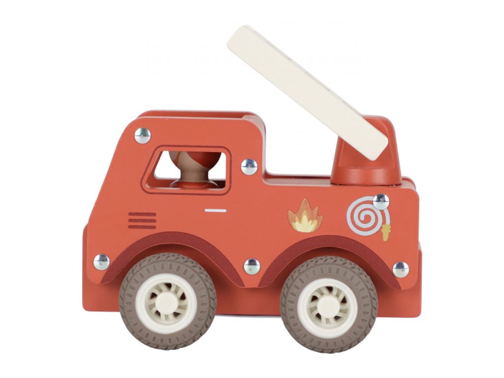 S tímto dřevěným hasičským autem budete vždy připraveni vyrazit do akce! Vozidlo je vybaveno výsuvným žebříkem a odvážným hasičem v podobě dřevěné figurky. Díky robustní konstrukci a gumovým pneumatikám je jízda plynulá a bezpečná na každém povrchu. Otevřený design umožňuje dětem snadné uchopení a tlačení, a proto je hasičské auto ideální pro malé ruce i velkou fantazii. Zachraňte zvířátka ze stromů, uhaste požár a ochraňujte své město! Vyrobeno z odolného FSC certifikovaného dřeva. Vhodné pro děti od 18 měsíců.