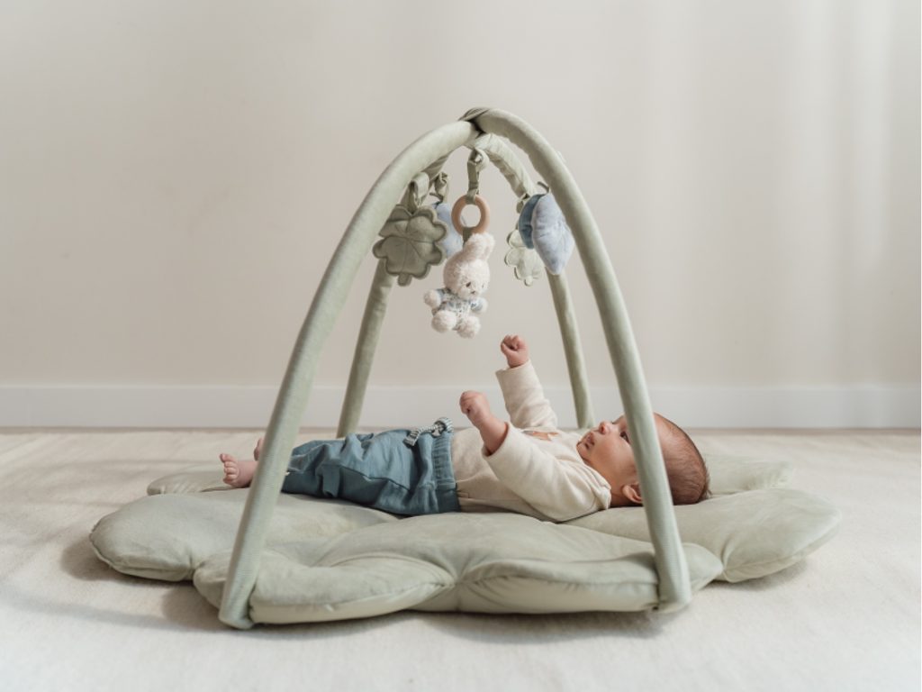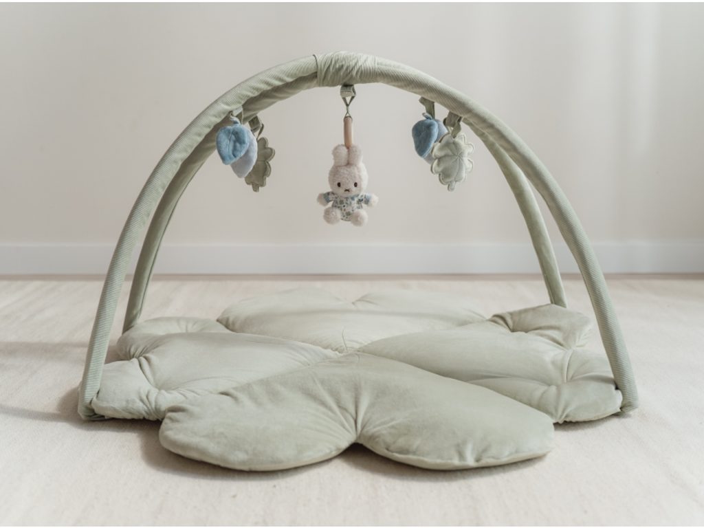 Měkká hrací deka ve tvaru čtyřlístku s hrazdou, na které visí roztomilé hračky v podobě králíčka Miffy a různých lístků. Při hraní s hračkami bude dítěti přitahovat pozornost chrastění, šustění, pískání i zvonění, což stimuluje jeho smysly. Hračky jsou odnímatelné, takže je lze používat i samostatně. Tato hrací deka podporuje rozvoj jemné motoriky a smyslů dítěte. Součástí kolekce hraček Little Dutch Miffy, která je inspirována oblíbenou postavičkou Miffy, králičí holčičkou z knih holandského autora Dicka Bruny.