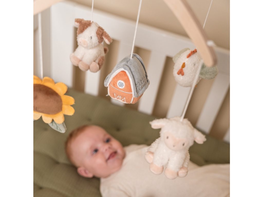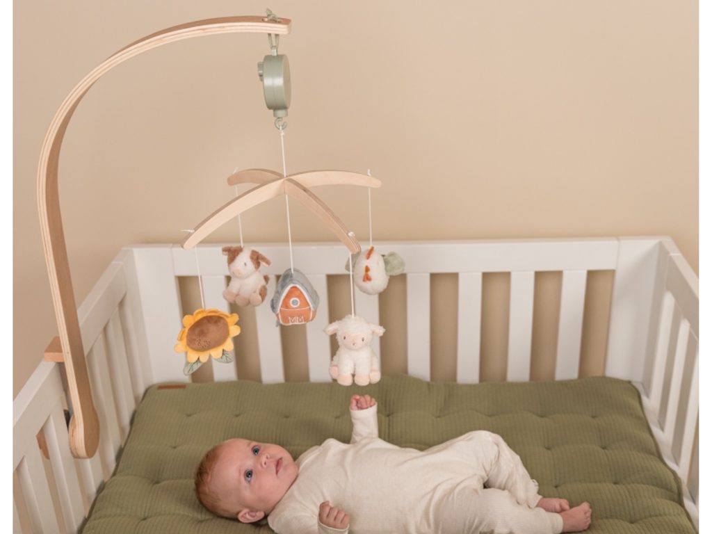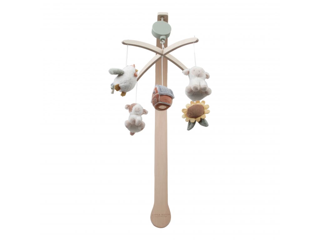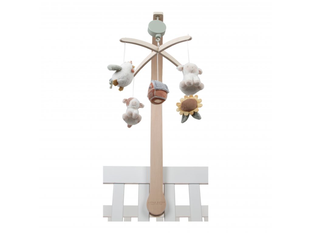 Krásný dřevěný kolotoč z kolekce hraček Little Dutch Farma hraje po natažení ukolébavku pro uklidnění vašeho miminka před spaním. Pozornost dítěte upoutá pět otáčejících se hraček v podobě zvířátek a motivů ze života na farmě. Kolotoč se snadno připevní na postýlku či ohrádku. Rozměry: 37 x 52 x 75 cm Vhodné pro děti od narození.