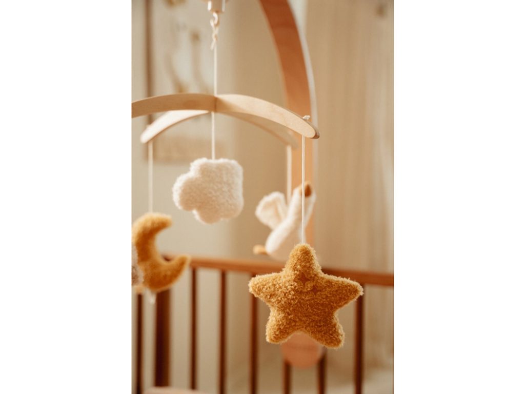 Krásný dřevěný kolotoč z kolekce hraček Little Dutch Newborn Naturals hraje po natažení ukolébavku pro uklidnění vašeho miminka před spaním. Pozornost dítěte upoutá pět otáčejících se hraček v podobě králíčka, husy, hvězdičky, mráčku a měsíce. Kolotoč podporuje klidné usínání a zároveň stimuluje smyslový vývoj miminka. Kolotoč se snadno připevní na postýlku či ohrádku. Vysoce kvalitní dřevěný rám je stabilní a elegantní. Kolotoč je součástí designové kolekce hraček a doplňků Little Dutch Newborn Naturals. Vyrobeno z dřeva certifikovaného FSC. Rozměry: 37 x 52 x 75 cm Složení: dřevo, 100% polyester Odnímatelné hračky je možno prát v pračce na jemný program při 30°C. Vhodné pro děti od narození.