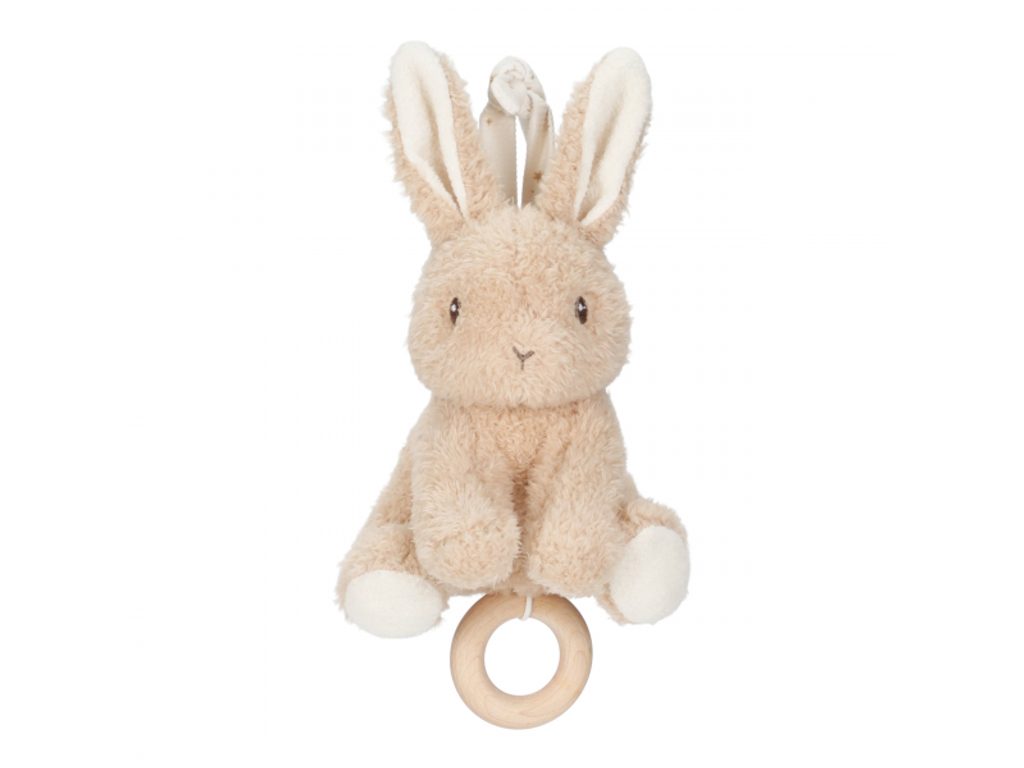 Závěsný plyšový králíček v sobě skrývá natahovací hudební box s příjemnou ukolébavkou, která vaše miminko uklidní a pomůže mu usnout. Králíčka snadno zavěsíte poblíž postýlky. Závěsný králíček je součástí designové kolekce hraček a doplňků Little Dutch Baby Bunny. Jedná se o dekorativní předmět, umístěte jej mimo dosah dítěte. Rozměry: 23 x 14 x 12 cm Složení: 100% polyester Výplň je vyrobena ze 100% recyklovaného polyesteru s certifikací GRS (Global Recycled Standard). Údržba: pouze otírejte vlhkým hadříkem Vhodné pro děti od narození.