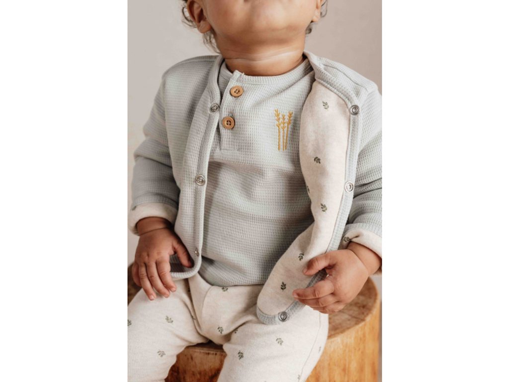 Zateplený kabátek z měkké organické bavlny má zapínání na patentky na přední straně pro snadné oblékání dítěte.