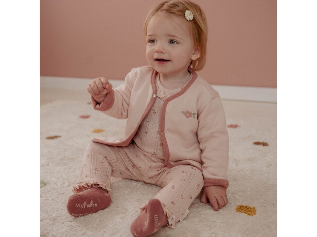 Stylový kabátek z měkké organické bavlny poskytuje vašemu dítěti teplo a pohodlí díky dvojité vrstvě materiálu. Díky oboustrannému provedení nabízí dvě barevné varianty nošení – světle růžovou s jemnou květinovou výšivkou a tmavě růžovou s decentním pleteným vzorem.