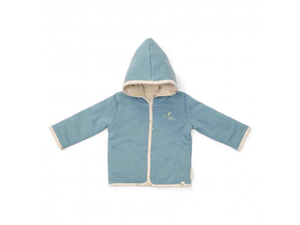 Stylový kabátek z měkké organické bavlny poskytuje dítěti teplo a pohodlí díky dvojité vrstvě materiálu. Oboustranné provedení umožňuje výběr ze dvou vzhledů – modré strany s výšivkou a krémové strany s jemným lesním potiskem.