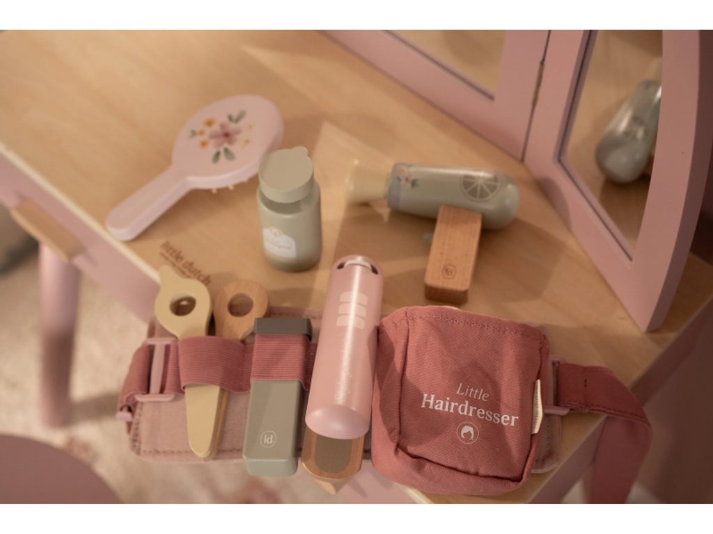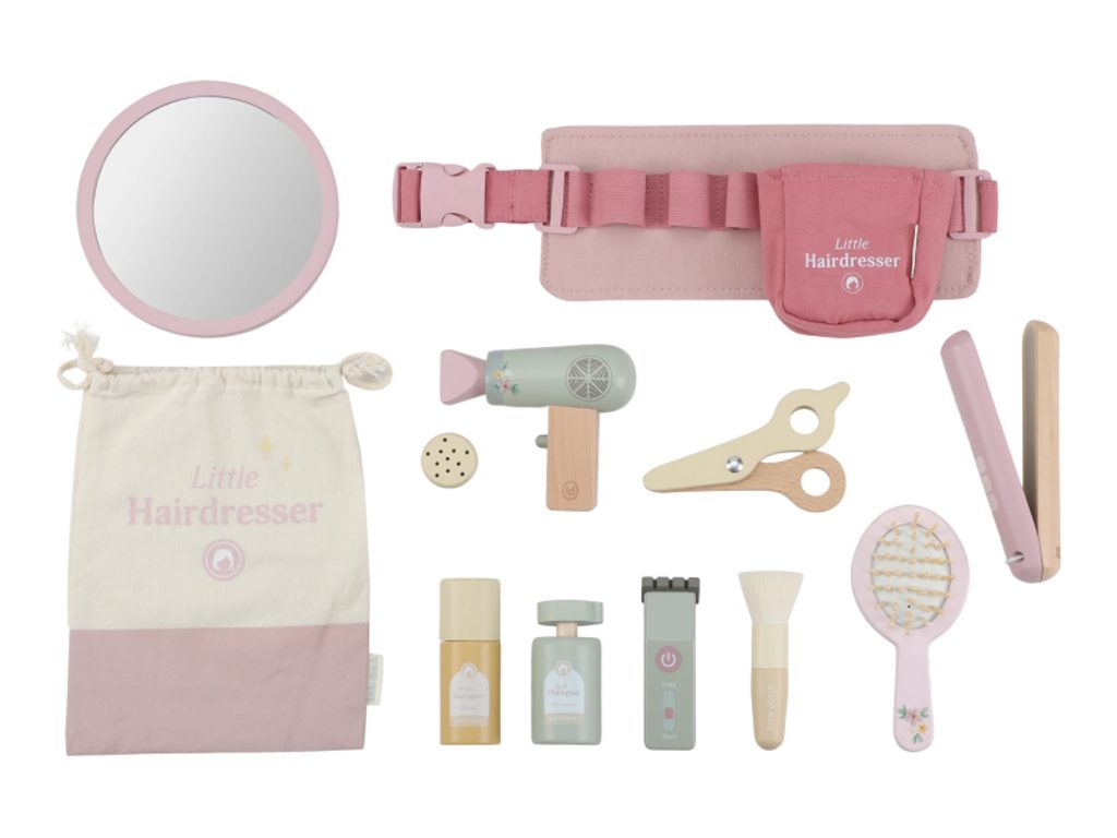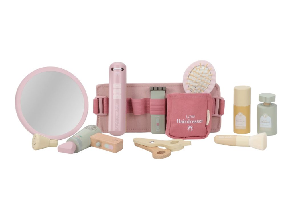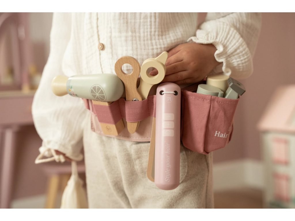 Stříhání, foukání a vytváření účesů jako u opravdového kadeřníka, to vše přináší dětem tato kouzelná dřevěná sada Little Dutch. Najdou v ní vše, co potřebují k otevření vlastního salonu krásy pro panenky, sourozence i kamarády. Kdo bude první zákazník? Kompletní sada příslušenství - obsahuje nůžky, fén, žehličku, strojek, kartáč, šampon, lak na vlasy a zrcátko Nastavitelný růžový opasek - umožňuje mít všechny pomůcky po ruce jako pravý profesionál Bezpečné a kvalitní zpracování - vyrobeno z dřeva s hladkým povrchem a zaoblenými hranami pro bezpečnou hru Podpora rozvoje dovedností - rozvíjí jemnou motoriku, představivost a sociální schopnosti při hraní rolí Okouzlující design - jemné odstíny růžové a přírodní dřevo zaručí, že sada zapadne do každého dětského pokoje Nekonečná zábava - děti mohou neustále vymýšlet nové účesy a příběhy Hračka je součástí kolekce vysoce kvalitních dřevěných hraček Little Dutch, navržených s důrazem na bezpečnost a originální design. Vyrobeno z odolného FSC certifikovaného dřeva. Rozměry balení: 27 × 8 × 17 cm Vhodné pro děti od 3 let.