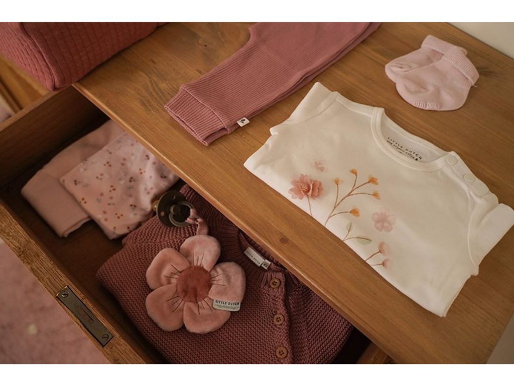 Dětské kalhoty z pružného bavlněného úpletu mají v pase širokou gumu pro snadné oblékání i pohodlí při nošení. Jsou vyrobeny z organické bavlny, která je příjemná na dotek a nedráždí citlivou pokožku dítěte. Kalhoty jsou součástí designové kolekce Little Dutch Květiny a motýli, ve které najdete dětské oblečení, dekorativní doplňky do dětského pokoje, ložní prádlo, dřevěné a plyšové hračky i jídelní doplňky pro dětské stolování. Složení: 95% organická bavlna, 5% elastan