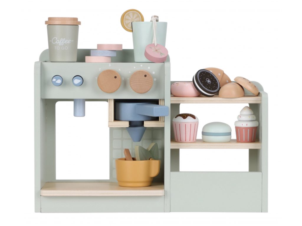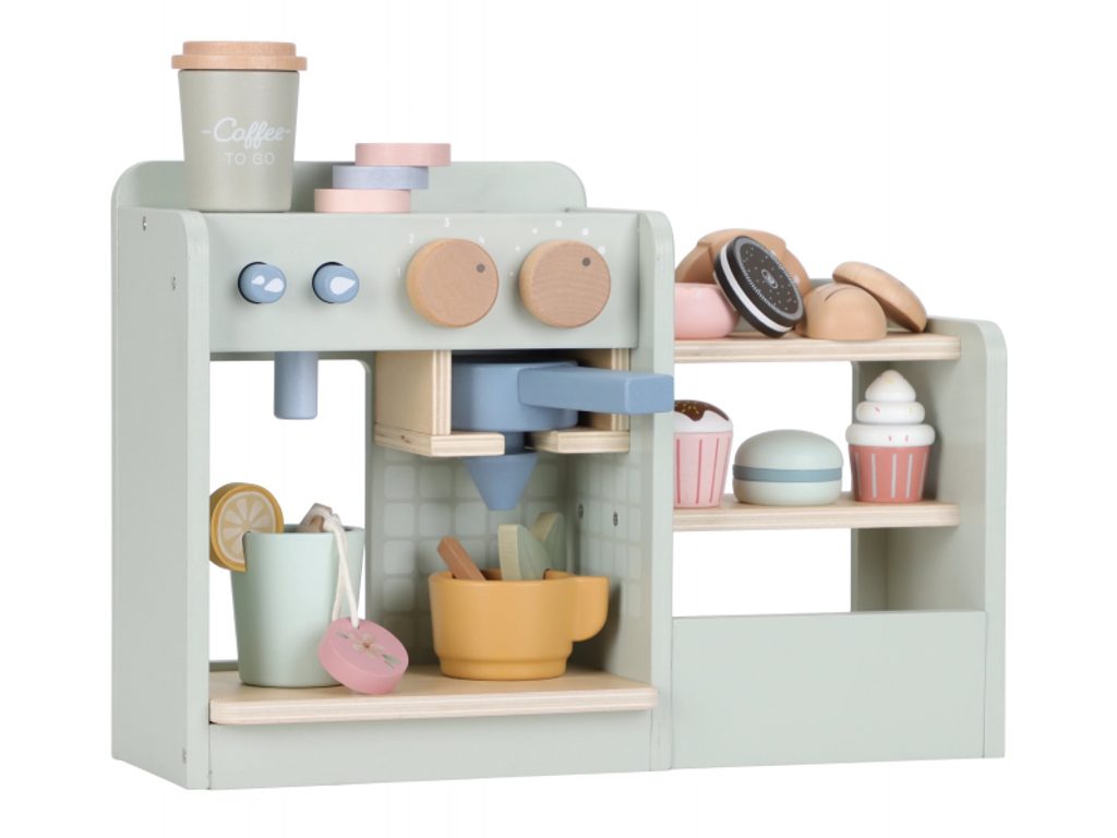 Vítejte v nejútulnějším kávovém koutku ve městě! Tento krásný dřevěný kávovar s bohatým příslušenstvím promění každé dětské hraní v nezapomenutelný zážitek. Malí baristé mohou mačkat tlačítka, volit nastavení a vkládat kapsle jako v opravdové kavárně – a připravit tak kávu nebo čaj přesně podle přání svých zákazníků. Součástí setu je kávovar, čajovar, úložný prostor na hrníčky a vitrína pro vystavení sladkostí a sendvičů. Děti mohou servírovat čaj s koláčkem nebo cappuccino s dortíkem a pozvat rodinu i kamarády do své vlastní kavárny. Hračka rozvíjí jemnou motoriku, kreativitu a komunikační dovednosti, a přitom poskytuje nekonečné možnosti zábavy v roli obsluhy. Vyrobeno z odolného FSC certifikovaného dřeva. Vhodné pro děti od 3 let.