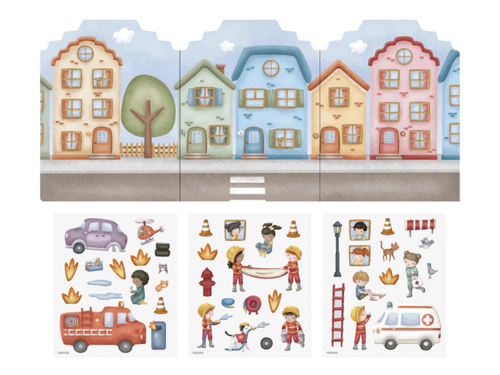 Podpořte dětskou fantazii s touto sadou opakovaně použitelných samolepek Little Dutch. Děti mohou znovu a znovu vyzdobit hasičskou stanici a ulice města více než čtyřiceti veselými 3D samolepkami a pokaždé vytvořit jiný příběh. Samolepky se snadno připevňují i odlepují, což umožňuje nekonečné hraní bez nepořádku. Ideální pro kreativní zábavu doma i na cestách. Vyrobeno z pevného papíru, který vydrží i časté používání. Vhodné pro děti od 3 let.