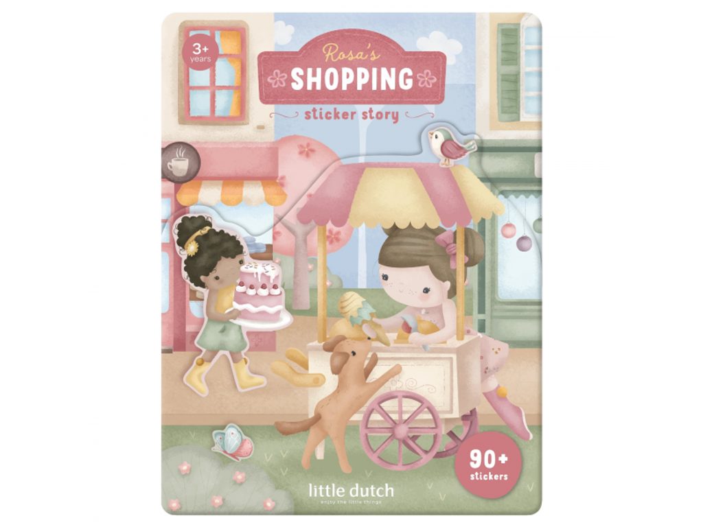 Fantazie vašeho dítěte ožije s touto veselou samolepkovou knížkou Little Dutch. Obsahuje více než 90 barevných samolepek s tématem nakupování a oboustranné herní pozadí, na kterém si děti mohou vytvářet vlastní příběhy, scény a dobrodružství. Ideální pro chvíle klidného tvoření i společnou zábavu s rodiči. Knížka je vyrobena z pevného papíru, takže zvládne i nadšené opakované hraní. Skvěle se kombinuje s dalšími kreativními doplňky Little Dutch. Vhodné pro děti od 3 let.
